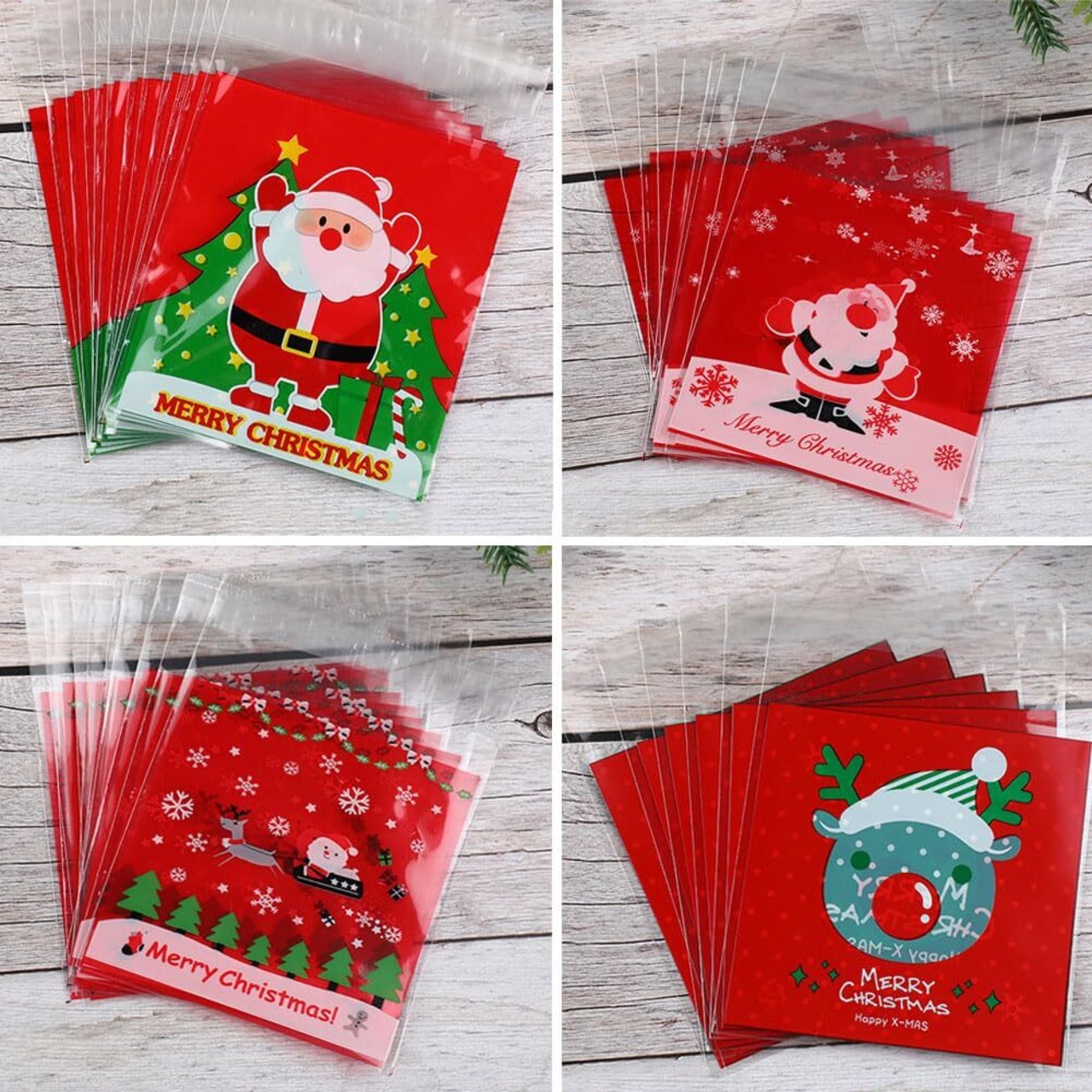 Moeagel クリスマス 袋 ラッピング袋 6種類120枚セット 10*10+3CM 使いやすい プレゼント 袋 チョコレート ビスケット クッキー用個別包装 小分け袋 お菓子小分け 可愛い サンタクロース merry Christmas 鹿柄 クリスマスの雰囲気満々 クリスマス お菓子袋 シール袋 お店用 パーティー 業務用 (6種類入り)