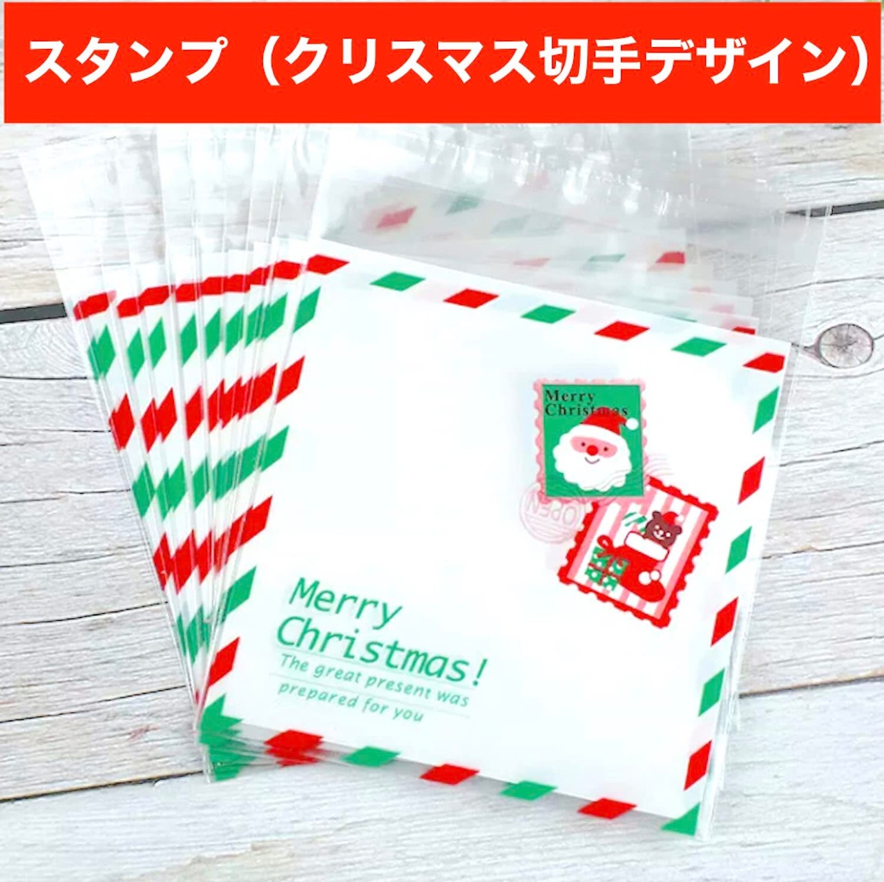 【クリスマス ラッピング袋】クリスマスプレゼントのお菓子や小物のラッピングなどにご使用いただけるOPPギフトバッグです。テープ付きですので、簡単に封をすることができます。前面は半透明タイプで封入物が判別できます。5種類のデザインが10枚づつ入ったセットです。