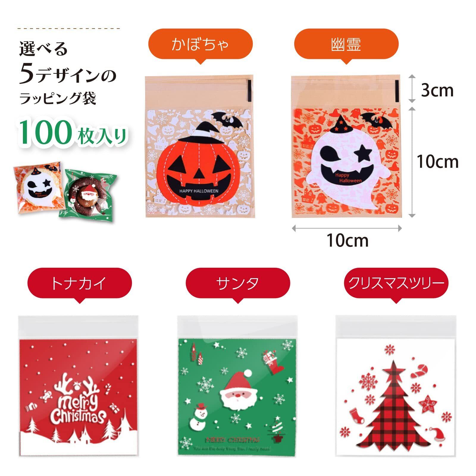 【お得な100枚セット】クリスマス 飾り ラッピング 袋 お菓子 自己接着 サンタクロース クリスマスツリー トナカイ 小物入れ ギフトバッグ シール袋 プレゼント カボチャハロウィン かぼちゃ 幽霊(トナカイ)