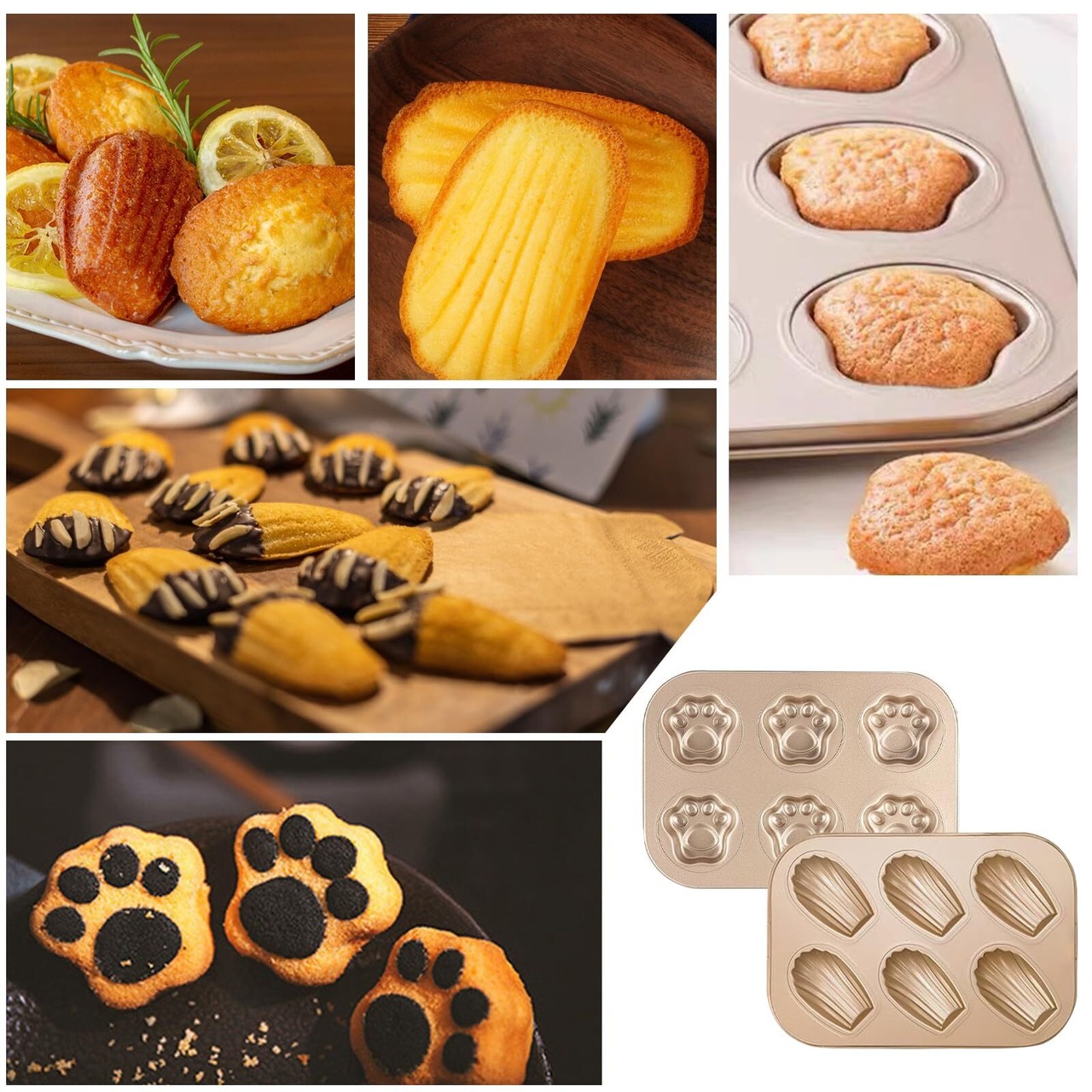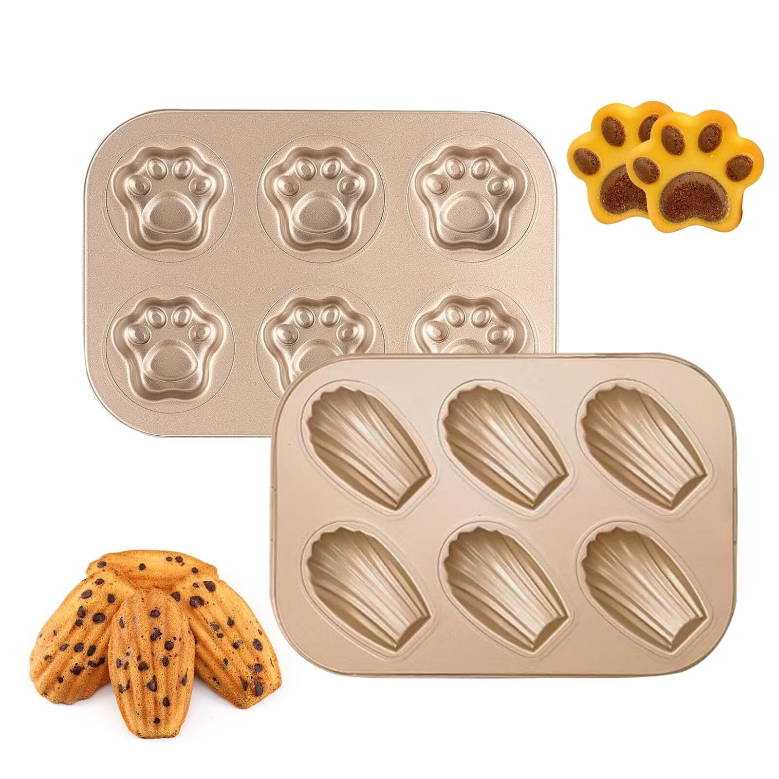 【2種類のデザイン付きセット】シェル型と猫の足の型の 2 種類、合計 6 キャビティ付き。デザート作りの無限の創造可能性を提供し、ホームベーカリーにもグルメ感を演出します。