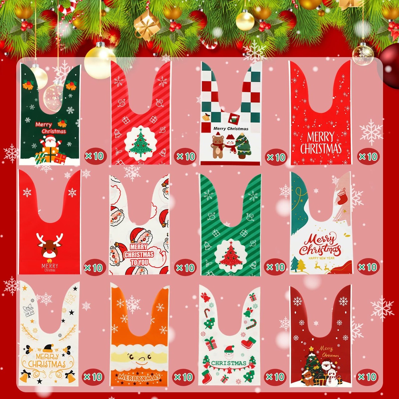 METBOU クリスマス 袋 120個セット クリスマス ラッピング 袋 お菓子袋 キャンディバッグ 小分け袋 クリスマス ギフトバッグ サンタ 雪だるま