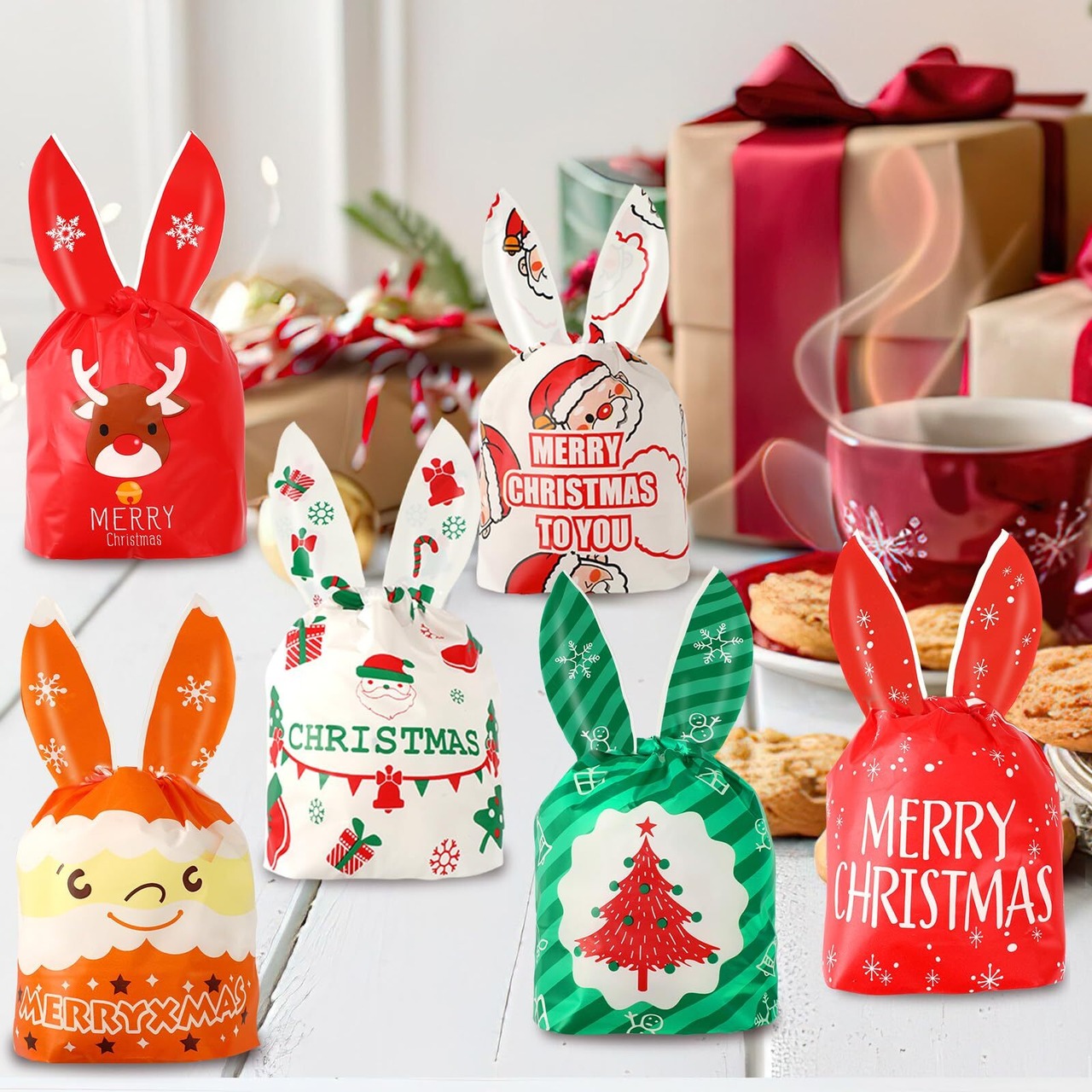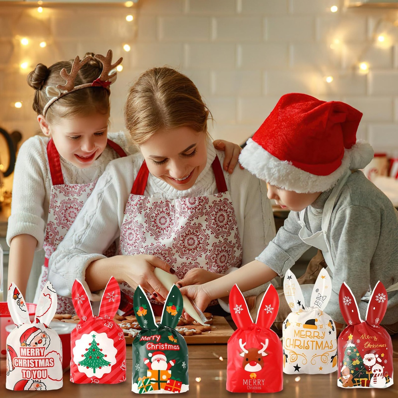 目立ちすい:これらのクリスマス ラッピング 袋は、サンタ、クマ、クリスマスツリーなどのクラシックなあいてむを採用して、12種類の異なるデザインに作りました。鮮やかなカラーと組み合わせて、雰囲気満点のクリスマス お菓子袋になります。開け口がうさぎ耳にデザインされて、締めると可愛く見えて、そのままに置いても目立ちやすいです
