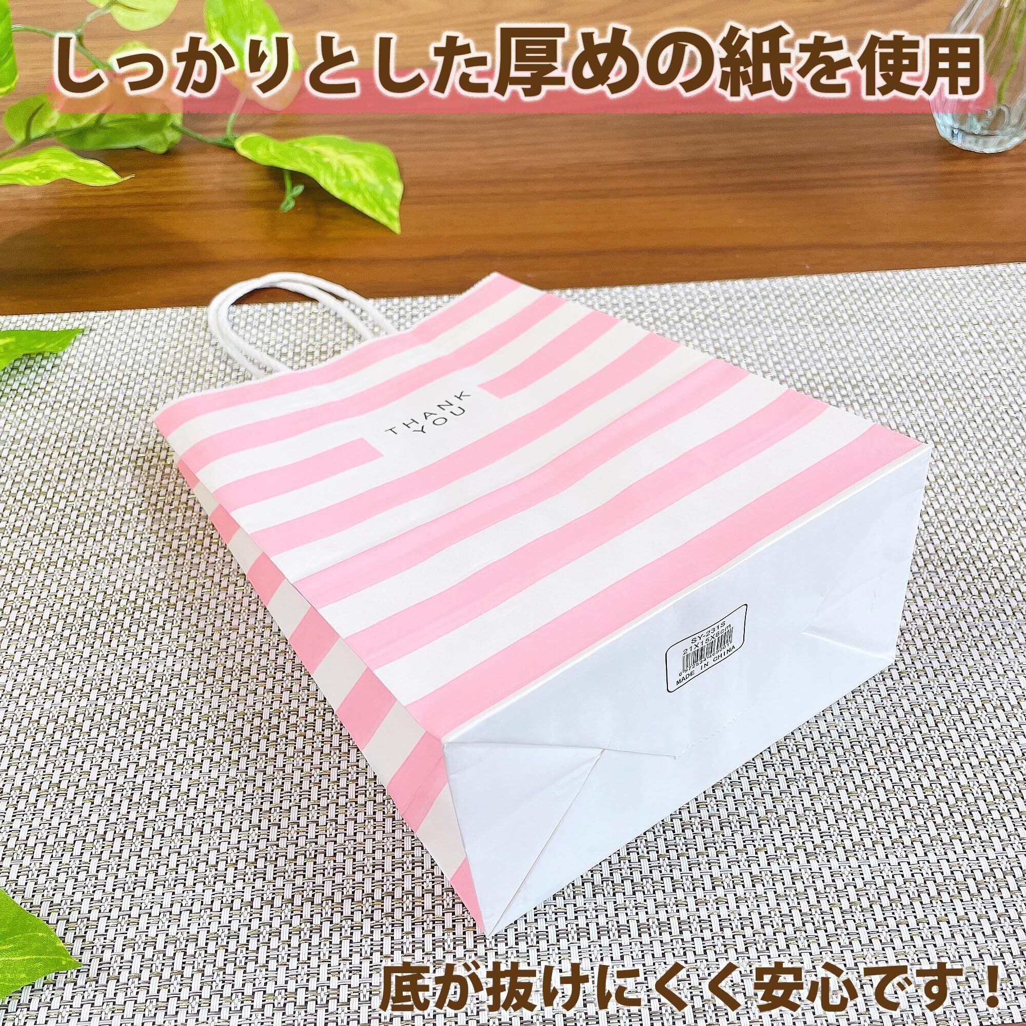 【用途】手作りのお菓子や小物をプレゼントする際の包装におすすめです。 誕生日やクリスマス、ハロウィン、母の日、父の日などの記念日のプレゼントに最適です。 カラーバリエーションも豊かなかわいいデザインの紙袋です。種類はレッド、ピンク、ブルー、ブラックでストライプ柄です。サイズ感もちょうど良いので贈り物を包むのにピッタリなギフトバックです! 大切な思いを届けるプレゼント!オシャレで可愛いラッピングで好感度もアップ!!