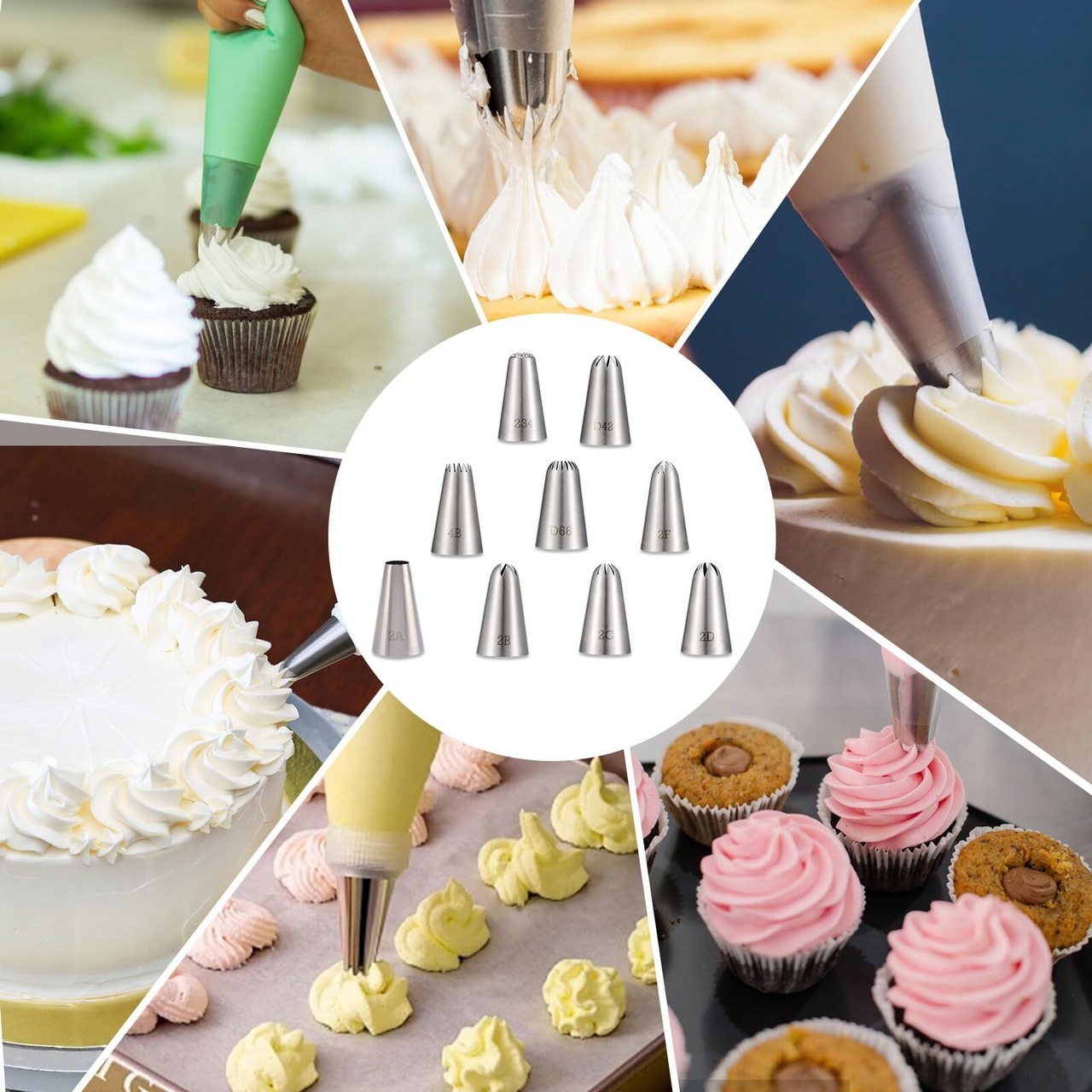 【絞り口金】ケーキを綺麗に飾るときに欠かせないアイテムです。円形、花びら、葉など様々な絞り口が揃っていますので、家族に美しくて美味しいケーキを作ってあげましょう!