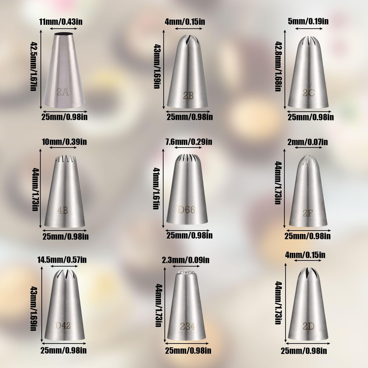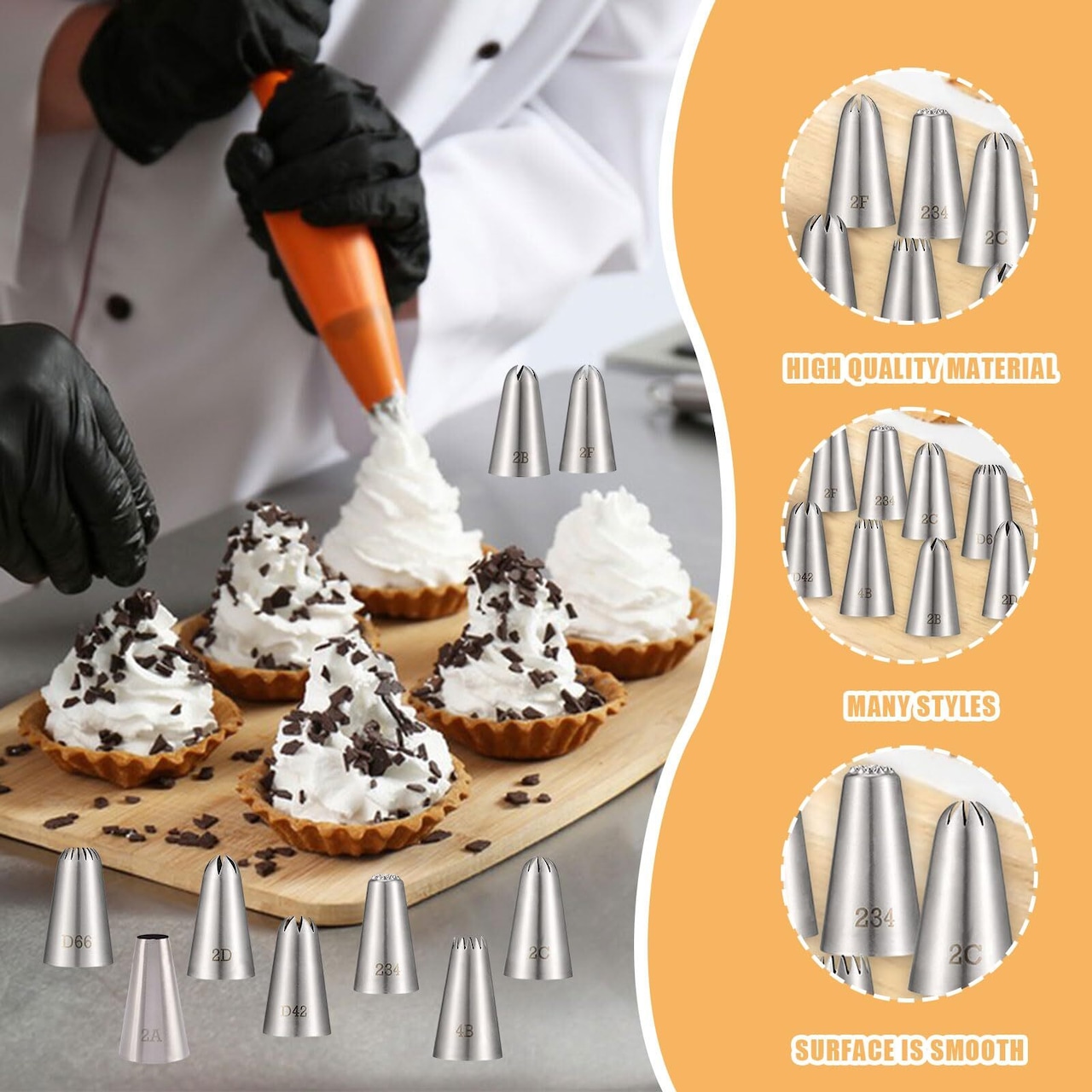 【安全な素材】絞り口金は安全性に優れた食品レベル304のステンレスを採用し、錆びにくく、丈夫で耐久性があり、繰り返し使用することができます。お手入れが簡単で、食器洗い機でも対応可能です。
