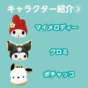 【キャラクター】・ハローキティ ・クロミ ・マイメロディー ・リトルツインスターズ(キキ)リトルツインスターズ(ララ) ・けろけろけろっぴ・ポチャッコ ・シナモンロール・ポムポムプリン