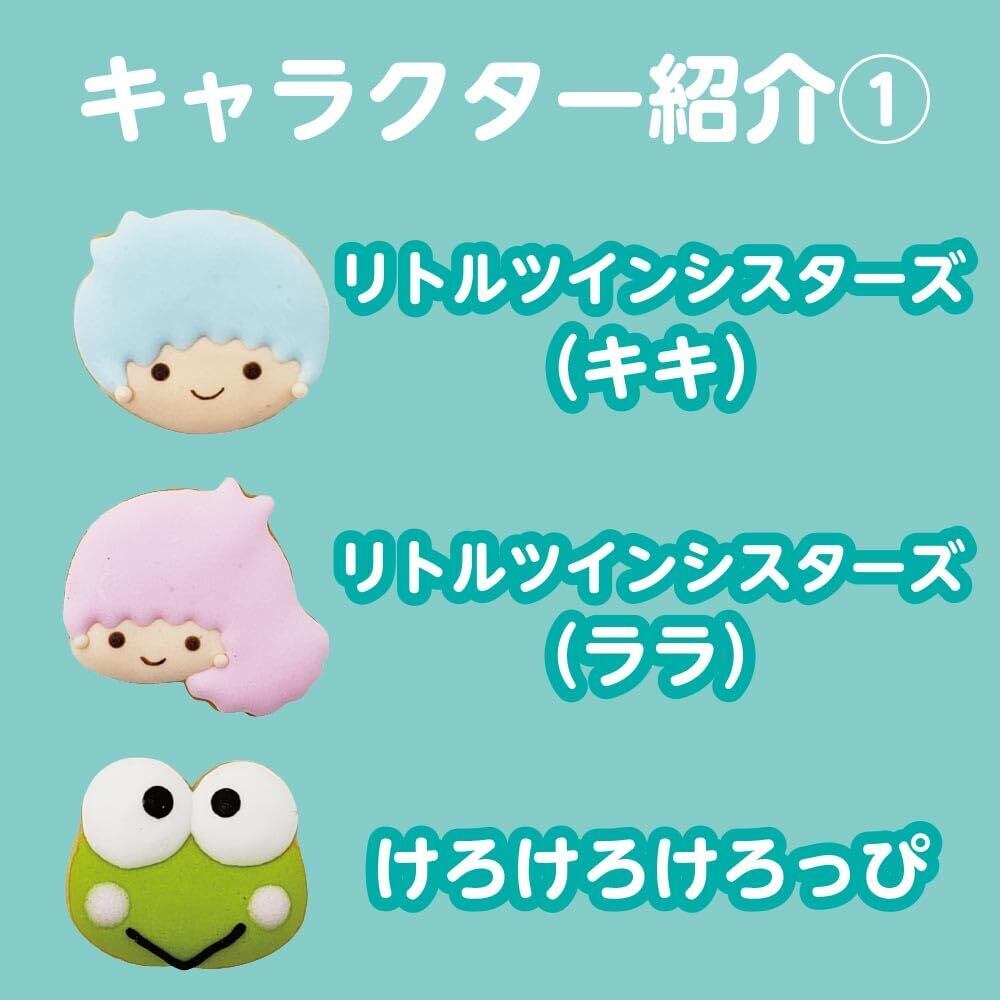 サリオの人気キャラクターが勢ぞろい! ※一部キャラクターが変更になる場合がございます。 ご了承の上ご購入ください。 かわいいアイシングクッキー(9個セット)です。 ・追跡メール便で丁寧に梱包し皆様へお届けします。 【キャラクター】 ・リトルツインスターズ(キキ) ・けろけろけろっぴ ・バットばつ丸 ・ポチャッコ・ハローキティ ・リトルツインスターズ(ララ)・クロミ ・マイメロディー・ポムポムプリン ※キャラクターは一部変更になる場合があります。【アイシングクッキーの大きさ】 各キャラクターにより若干サイズは異なりますが、約3.5cmほどです。 500円玉を一回り大きくした位のサイズです。 【アイシングクッキーの楽しみ方】 ・ケーキのデコレーションとして ・アイスの飾りつけに ・誕生日のプレゼント ケーキのトッピングに 色々な場面でお楽しみ下さい! (※キャラクターは予告なく変更になる場合があります。)ご了承の上ご購入ください。