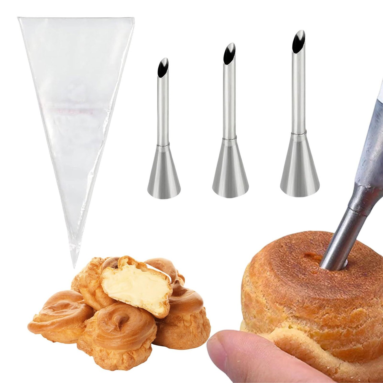 3種類のシュークリーム用口金セットです。304ステンレス素材で作られます。安全無毒で耐久性に優れます。洗いやすくお手入れが簡単です。