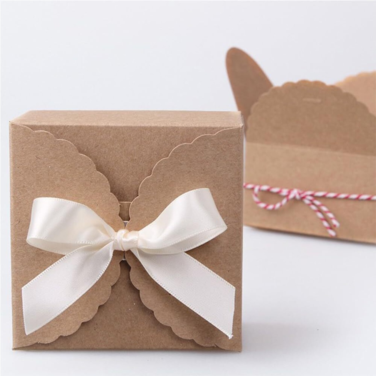 ギフトボックス 4個セット ラッピング 箱 リボン付き 9×9×5cm お菓子ボックス おしゃれ プレゼント ギフト 可愛い お菓子 贈り物 バレンタイン (牛皮色です)