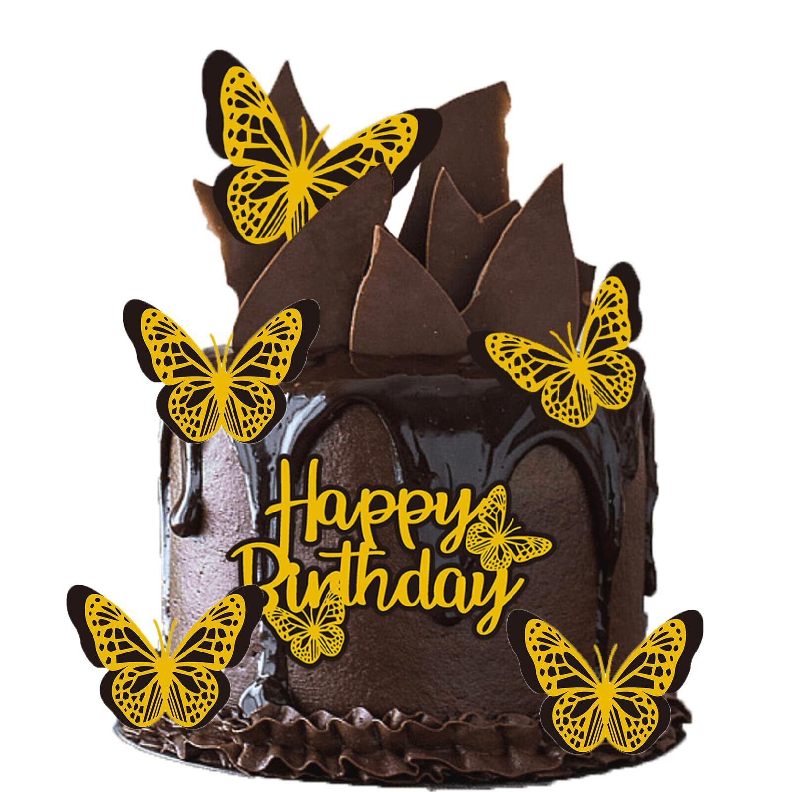 ケーキトッパー 誕生日ケーキ 飾り ハッピーバースデー 飾り付け 黑金 蝶 ケーキ挿入 ケーキインサート バースデーケーキ デコレーションセット 果物 お菓子 お弁当用 お誕生日 デコレーションケーキちょうちょう