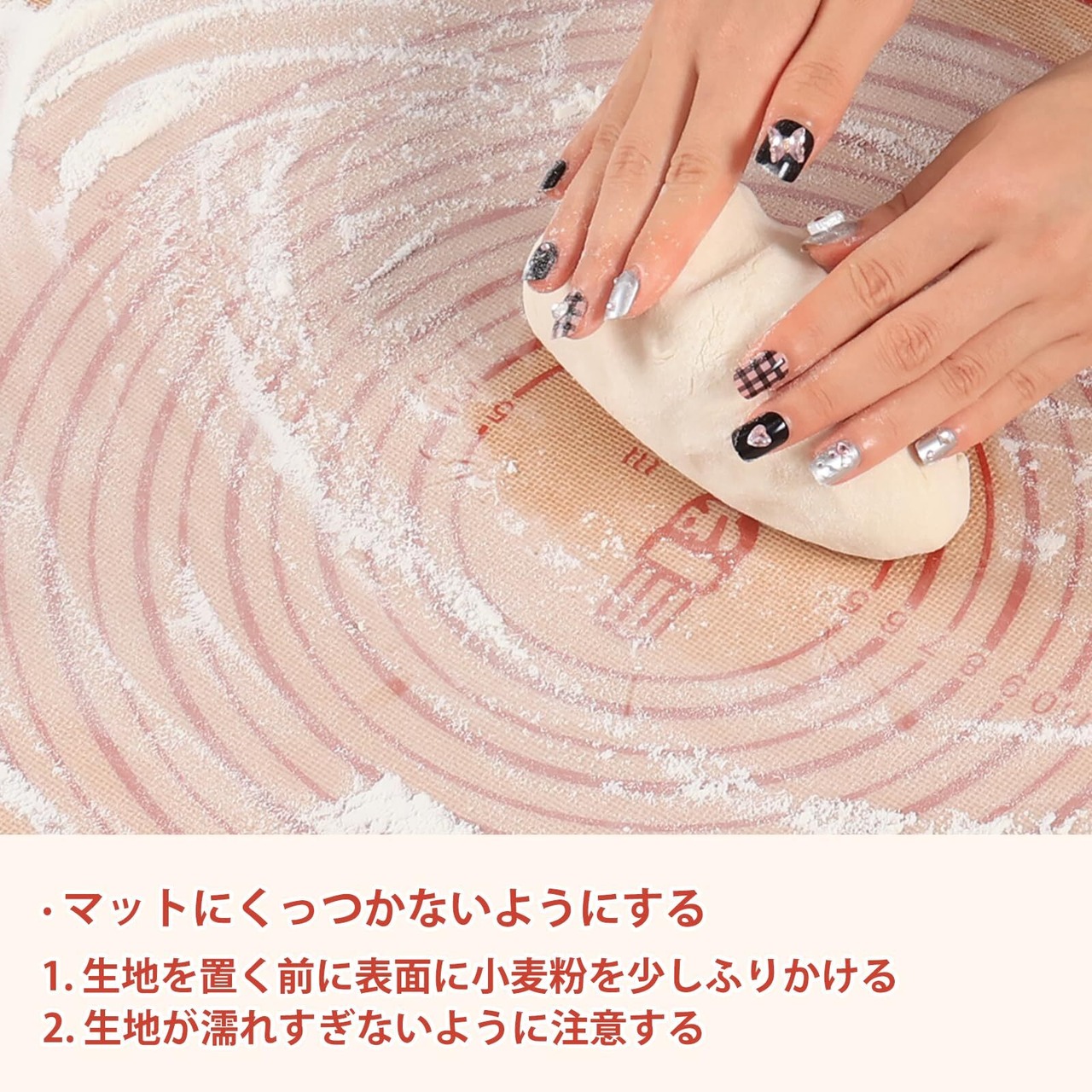 自由に切り替えます:データ測定デザインを採用し、(片側4〜15インチ)、練り粉の幅をいつでも制御できます。しかも各めん棒の両端に5種の異なるサイズの取り外し可能なリングをデザインしております。(10mm、8mm、5 mm、3 mm、2 mm)。練り粉の異なる厚さを調整することができます。クッキングマットの表面にインチとセンチの単位のサイズがあります。シュガービスケット、麺、パイ、パン、パスタケーキ、フォンダンピザに適用します。