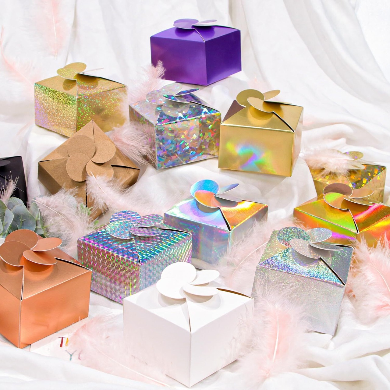 DIFEIUKI ミニ ギフトボックス 50個セット 紙製 ラッピング箱 無地 白 キャンディボックス オシャレ 花の形 お菓子箱 ウェディング パーティー バレンタインデー チョコ お菓子 小物入れ プレゼント包装用 紙箱 7.8x7.8x5cm