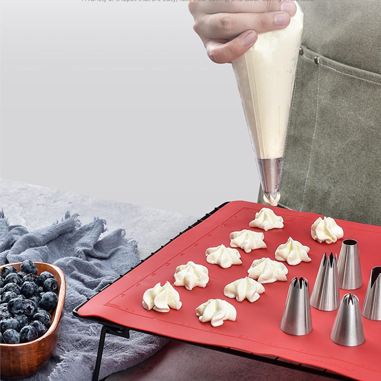 【材質】絞り口金は優れた食品レベルのステンレススチールを採用して、清潔で洗いやすい。防錆、耐腐食、色褪せないし、しっかりした作りで耐久性があり、再利用可。