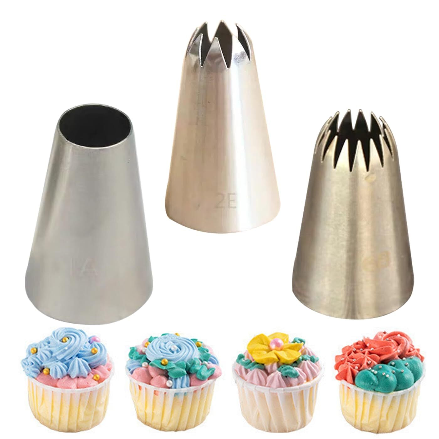 FineGood ステンレス製 絞り口金 ケーキ デコレーション飾り ステンレス 製菓用品 3個セット お菓子作り クッキー ケーキ(3個セット 丸型 花型)