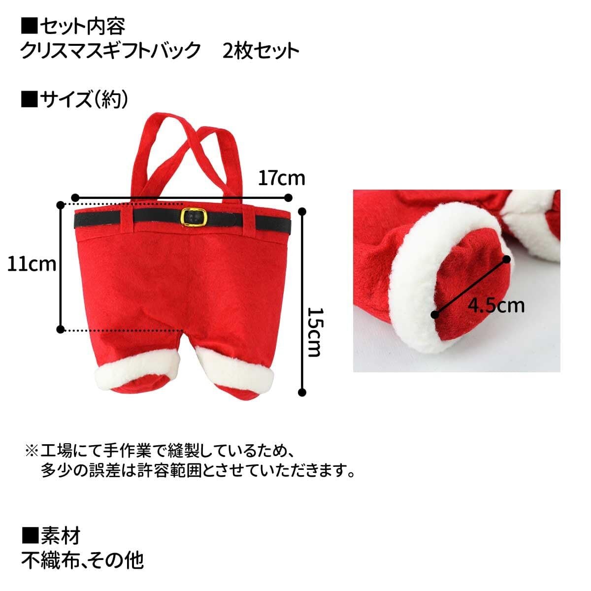 【 クリスマスらしいデザイン 】サンタの服をイメージしたお洒落なデザイン。バッグタイプでプレゼントを入れるだけで、ラッピングの完成です。