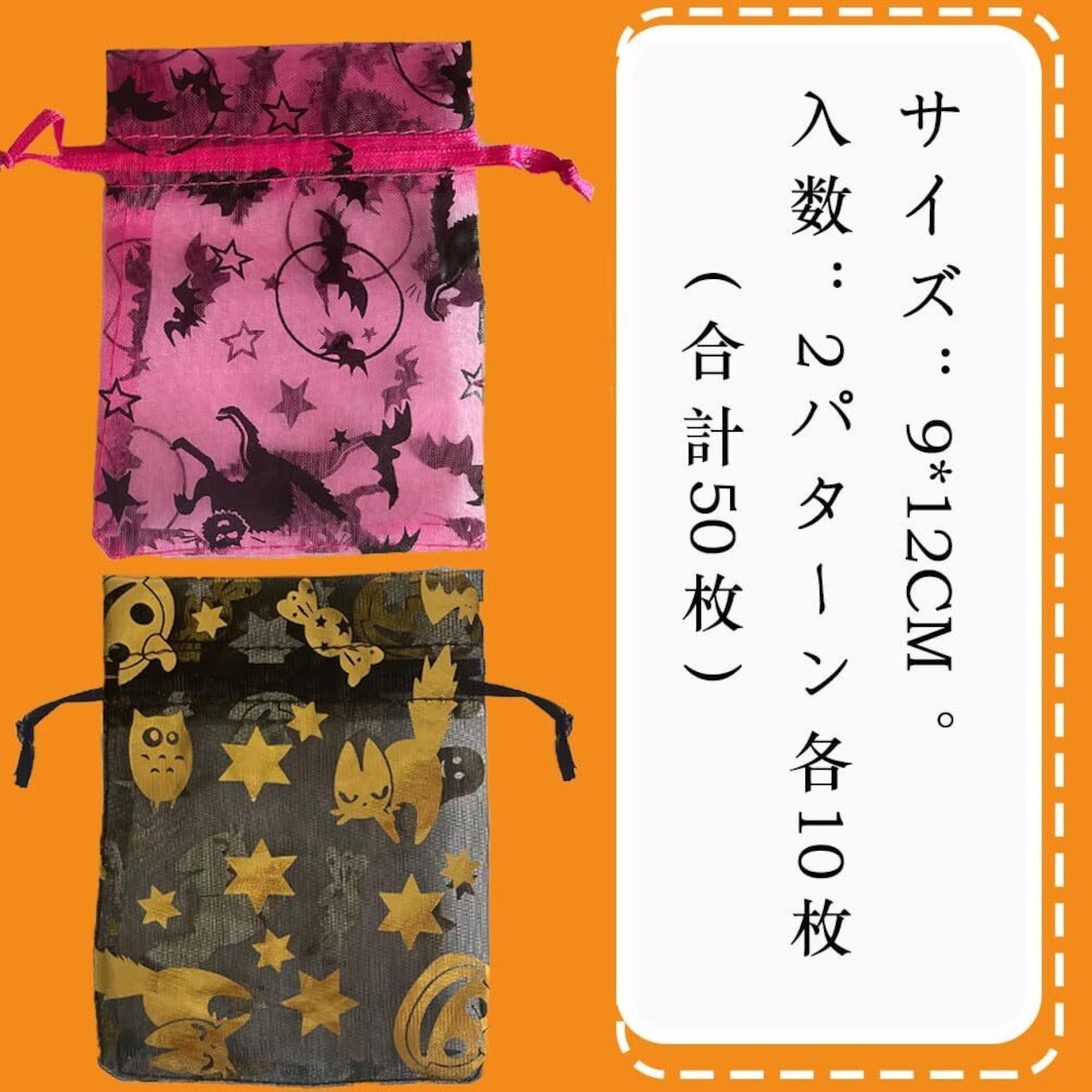 Moeagel ハロウィン キャンディーバッグ 2種類50枚セット お菓子袋 巾着袋 ラッピング袋 9*12cm 使いやすい 可愛い ギフトバッグ かぼちゃ コウモリ 黒猫 ハロウィンの雰囲気満々ハロウィーン お菓子袋 お菓子小分け ラッピング袋 お店用 パーティー 業務用 (2色-50枚入り)