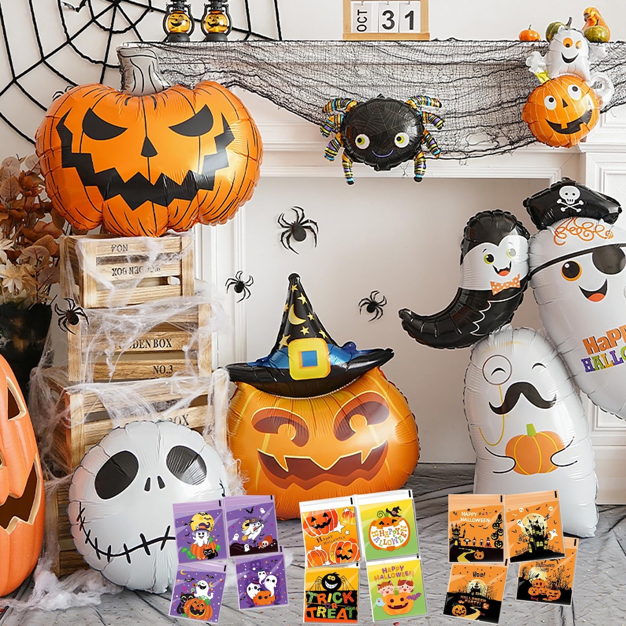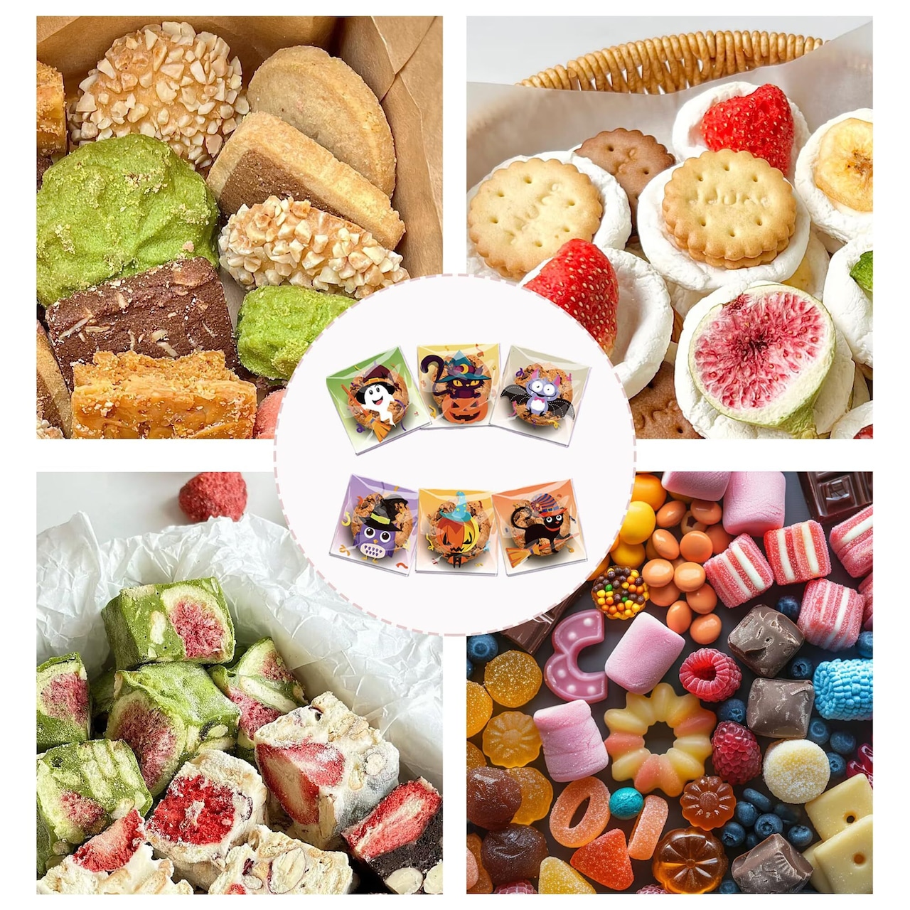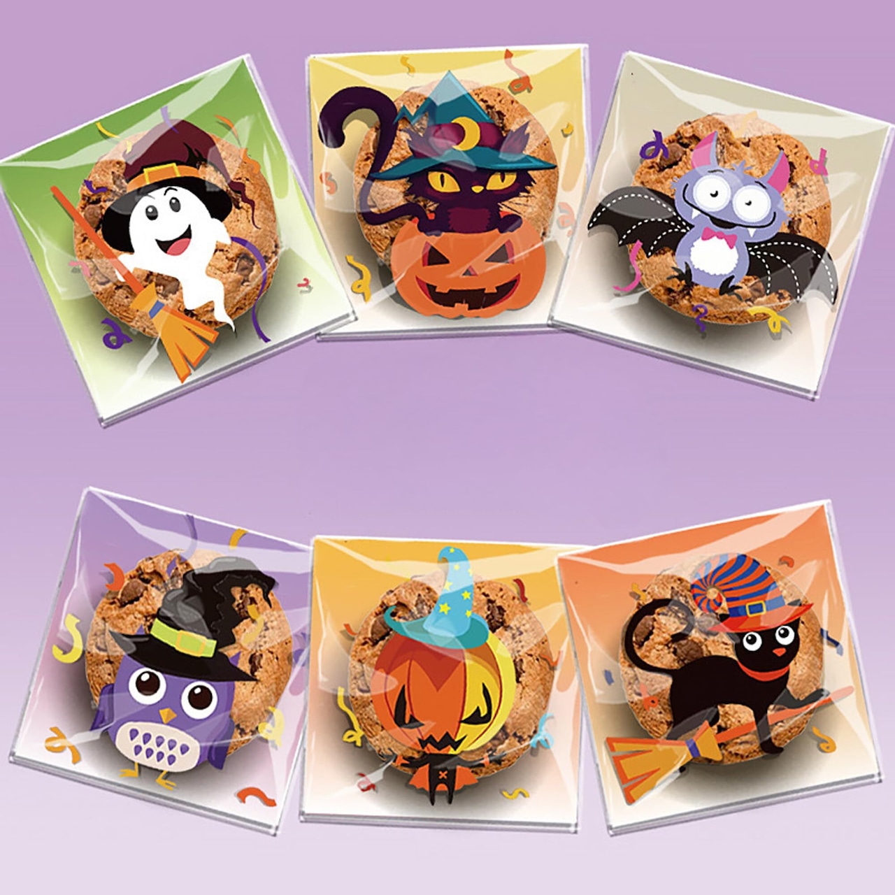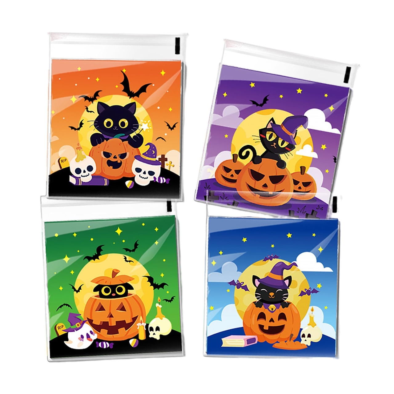 DEVENTORZ OPP 食パン袋 100個セット お菓子 ラッピング 袋 ラッピング袋 小分け袋 ラッピング 袋 小 レーズンサンド袋 半透過性袋 スナック袋 ビスケット袋(ハロウィンかぼちゃ猫 4 in 1)