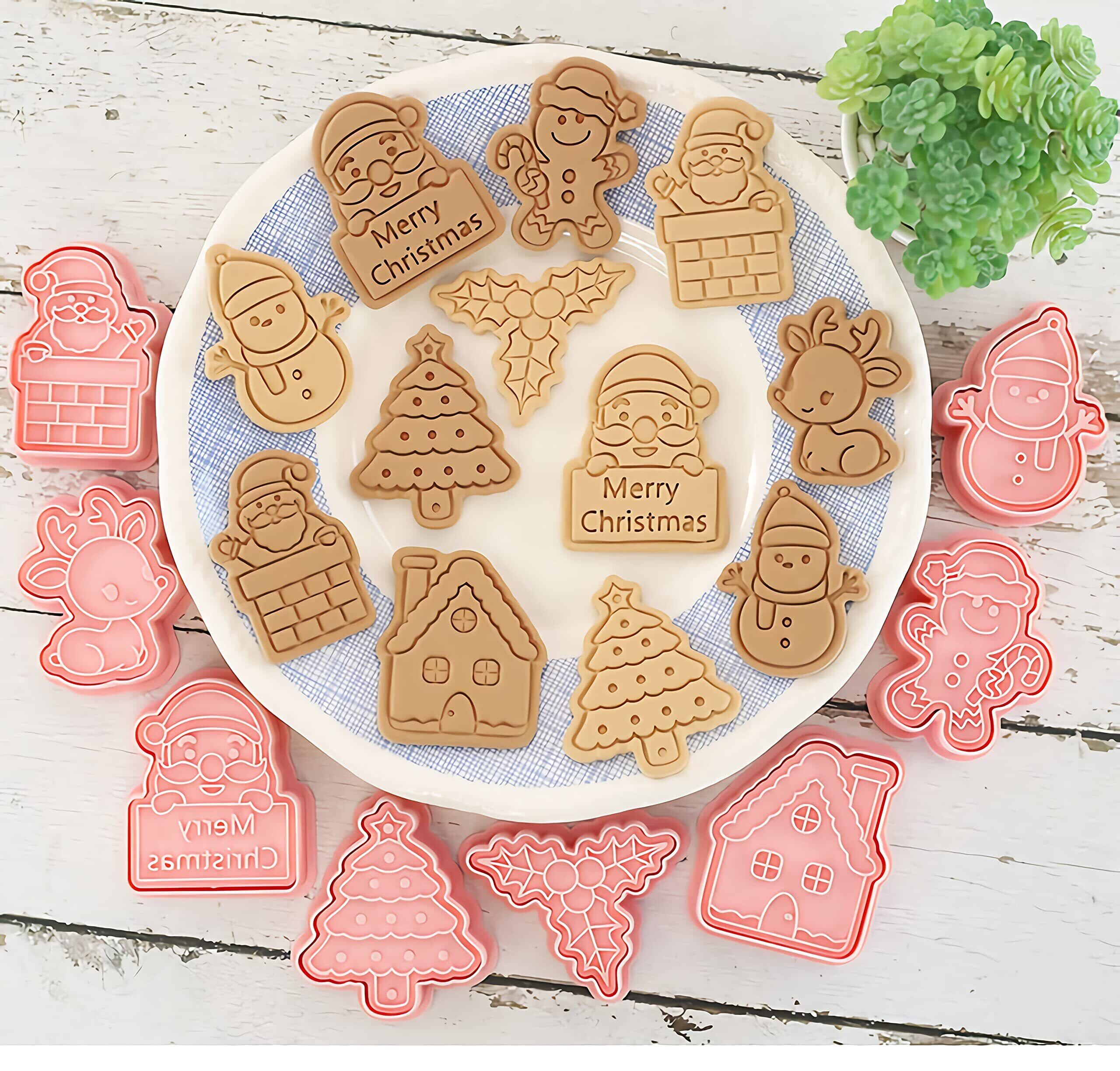voocye クッキー型 クリスマス8個セット 抜き型 3D DIYクッキーカッター 製菓道具 お菓子作り キッチン お弁当 手作り クリスマスケーキギフト (C)