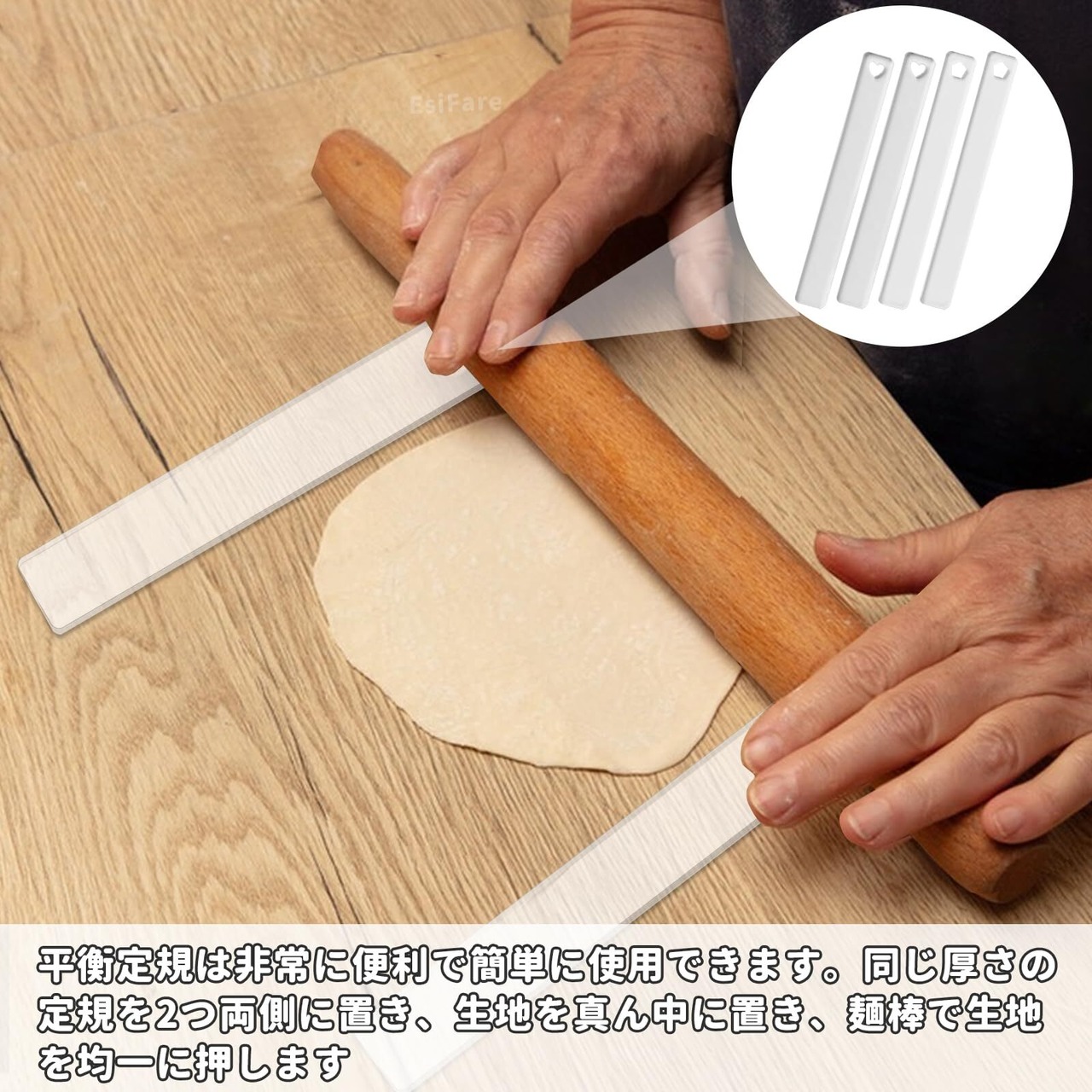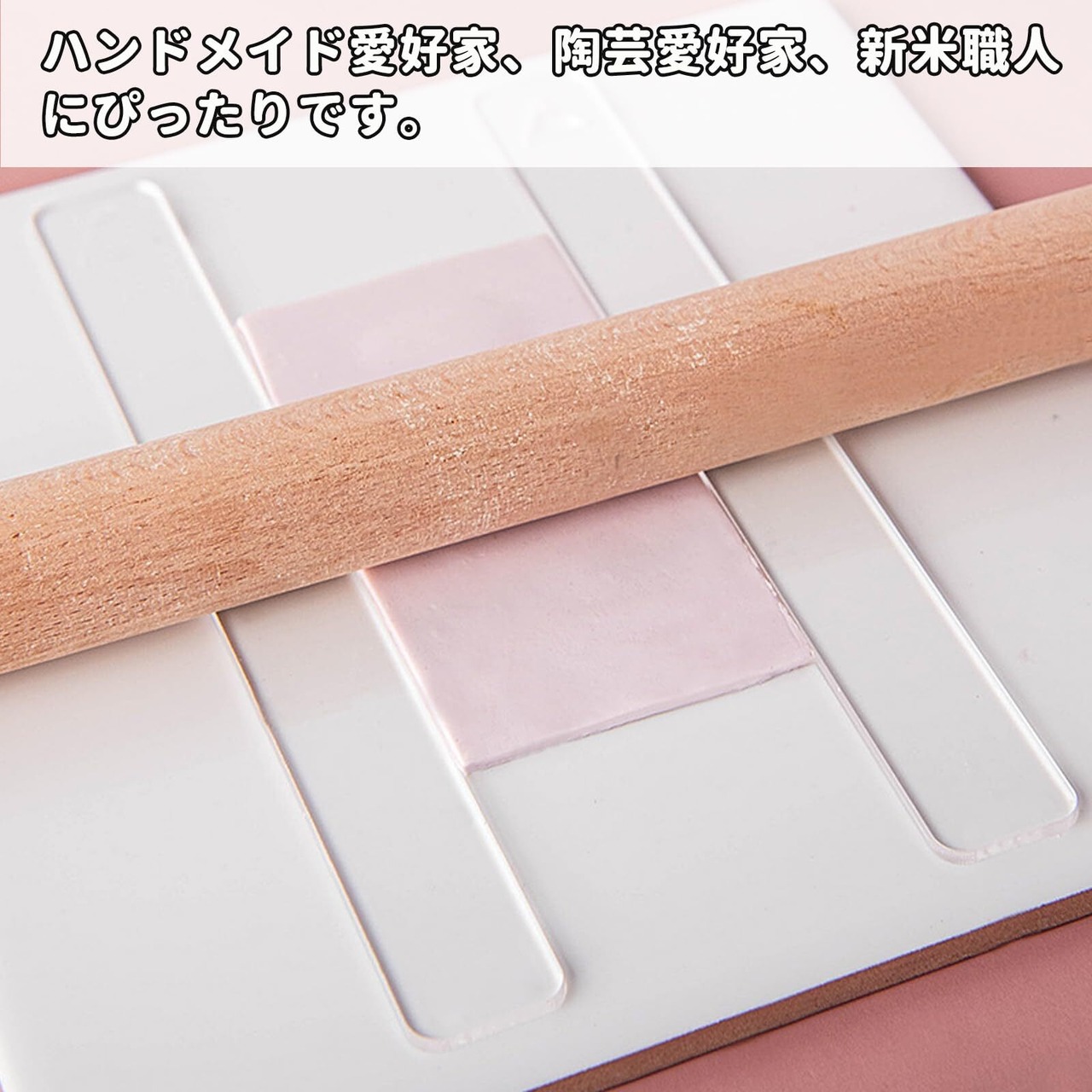 【粘土深さガイド】この粘土ルーラーは麺棒と一緒に使用し、2つのバランス定規の間に柔らかい陶器や生地を挟むことで、均一な厚さの生地を作ることができます。 注意:使用前に保護フィルムをはがす必要があります。
