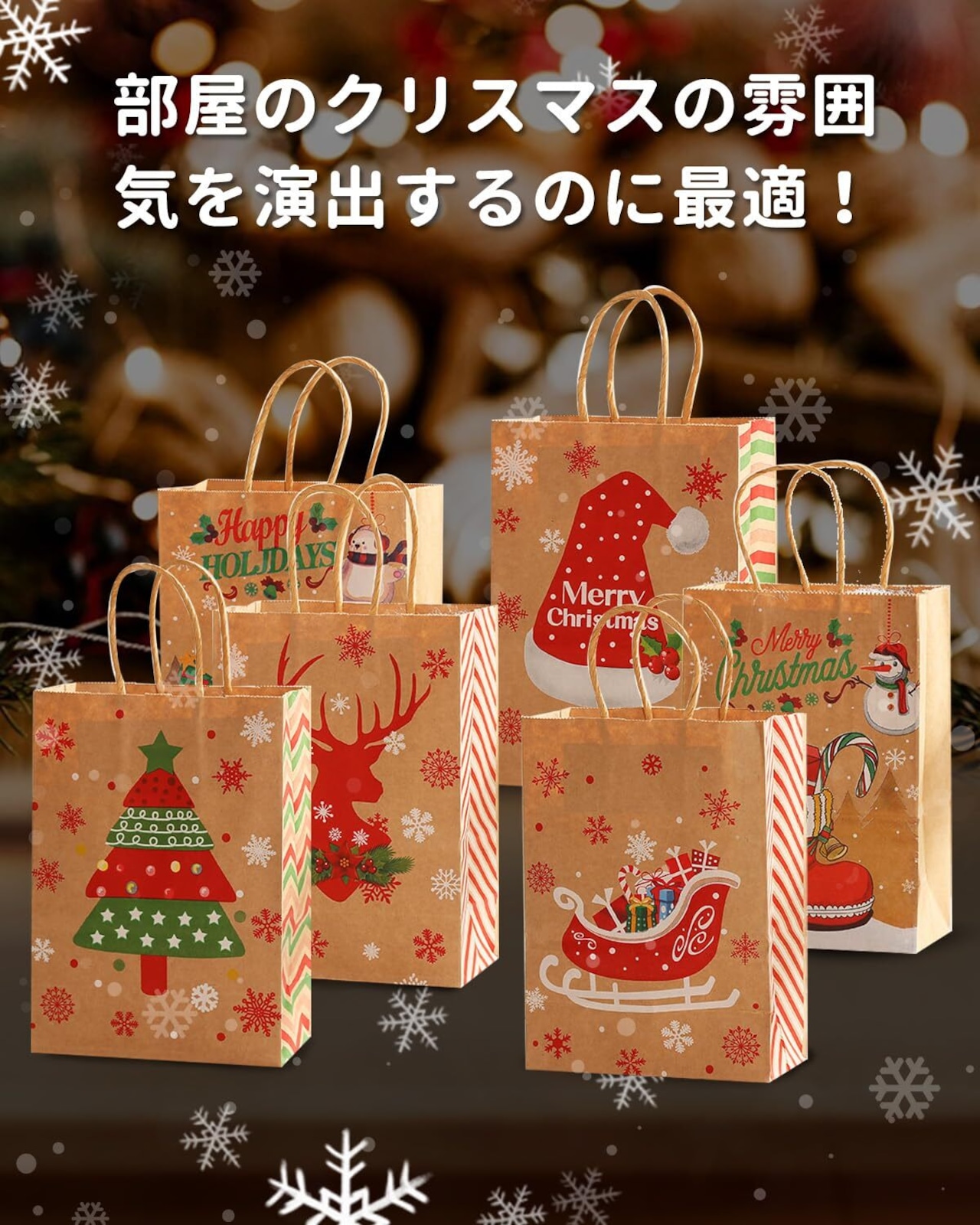 クリスマス 手提げ紙袋 プレセント ラッピング袋 おしゃれ ギフトバッグ 小 中 大 6枚セット かわいい 子供 お菓子袋 21x15cm