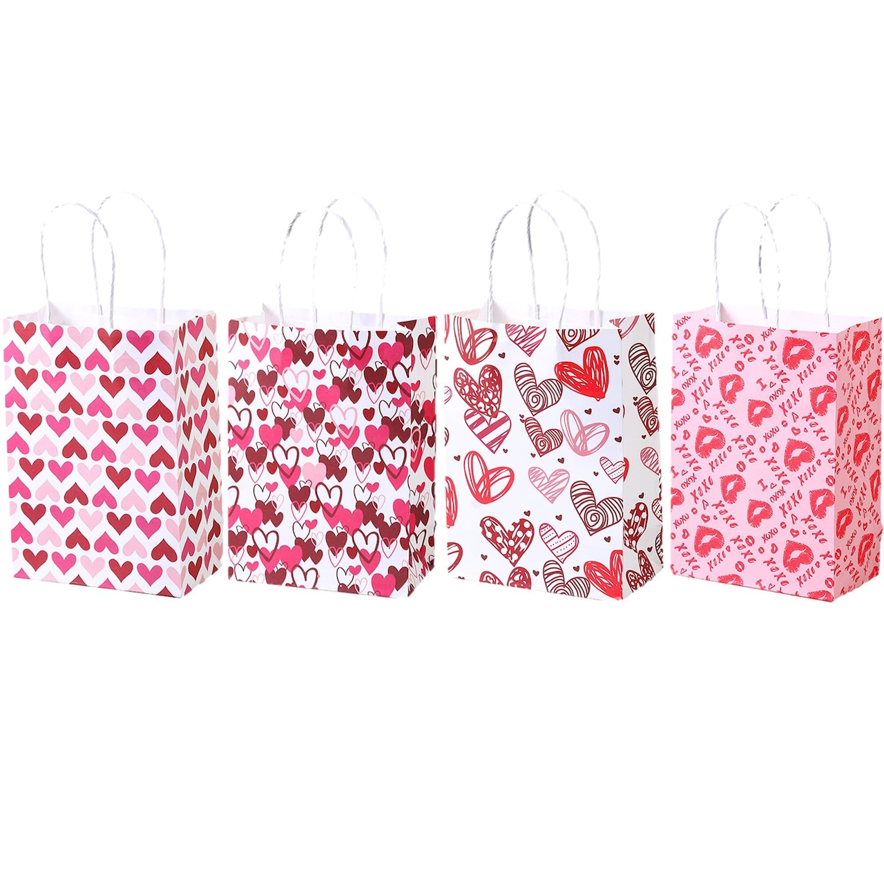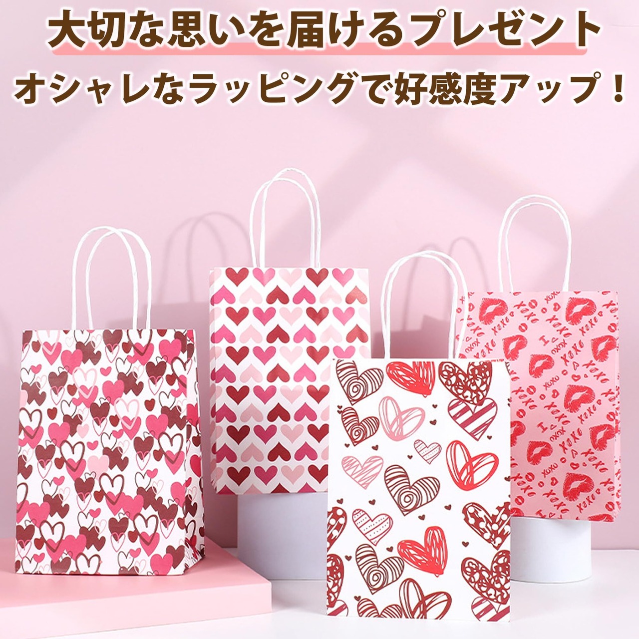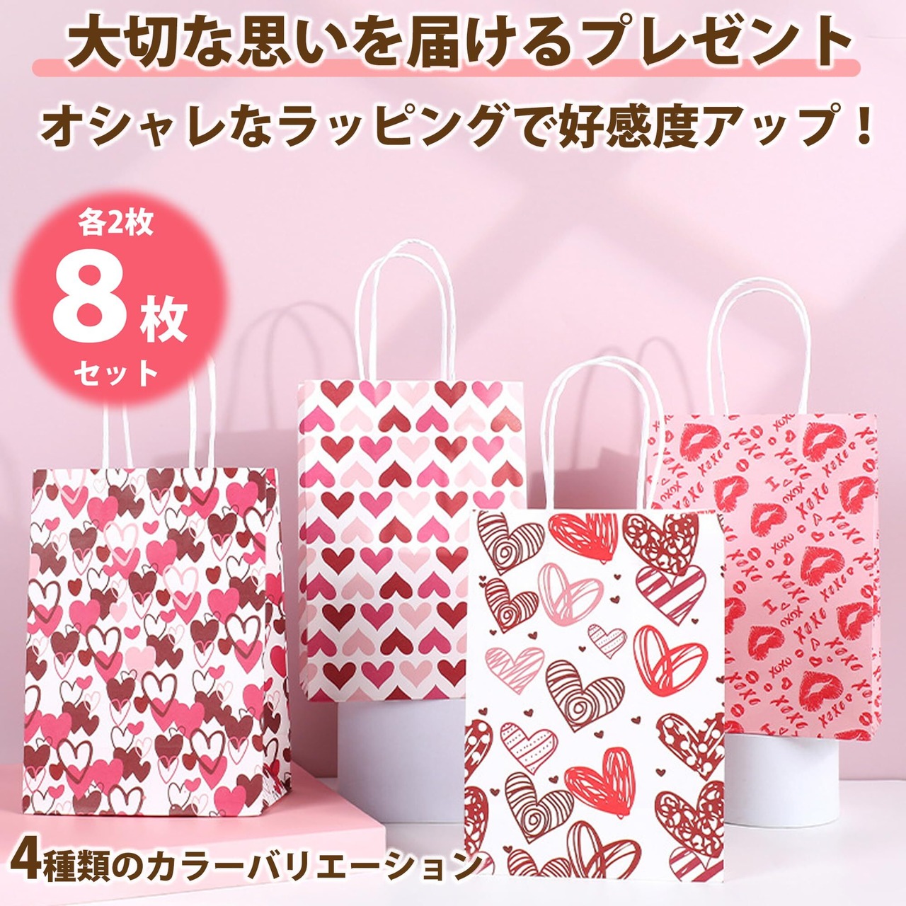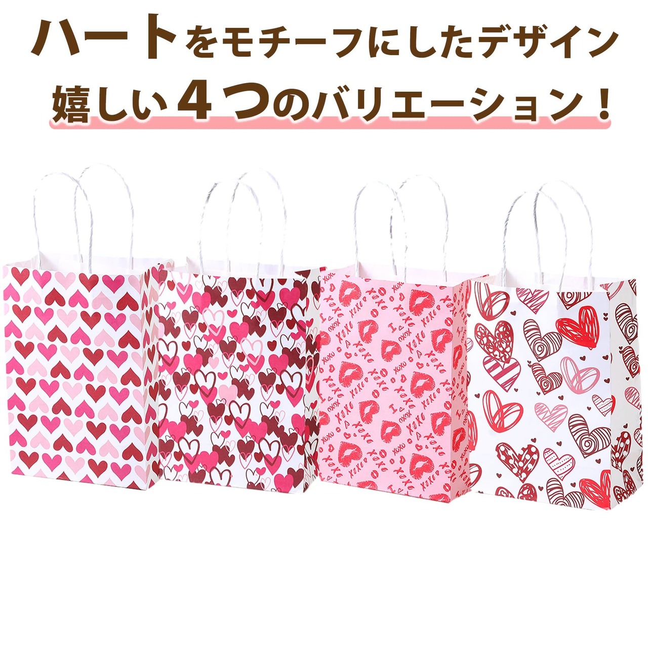 【トゥルーハーツ】ラッピング 袋 ギフトバッグ 8枚セット 4種類 紙袋 紙バッグ ギフトバッグ プレゼント 手提げ おしゃれ 可愛い チョコレート お菓子 小物 贈り物 マチあり ハート (4種ハート柄小サイズ)