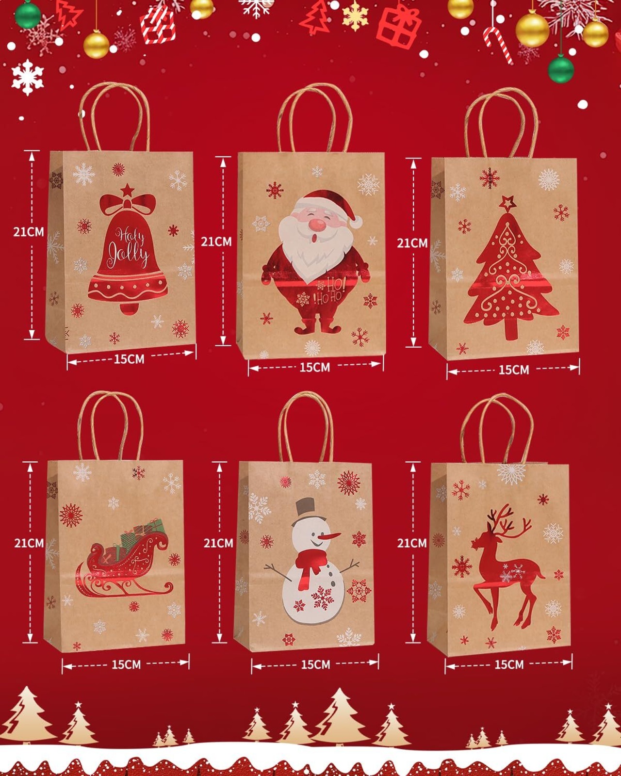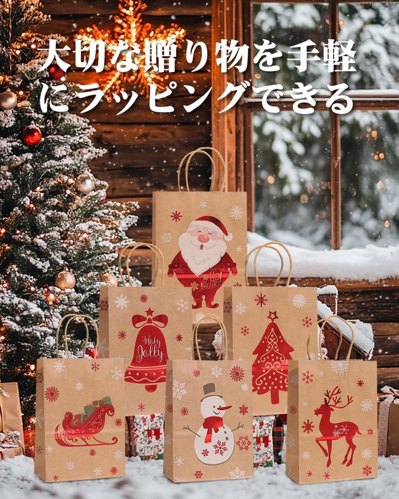 クリスマス 手提げ紙袋 プレセント ラッピング袋 おしゃれ ギフトバッグ 小 中 大 6枚セット かわいい 子供 お菓子入れ袋