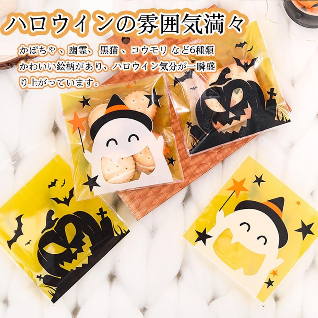Moeagel ハロウィン キャンディーバッグ 6種類120枚セット 10*10+3CM 使いやすい 可愛い かぼちゃ 幽霊 黒猫 コウモリ ハロウィンの雰囲気満々 ハロウィーン お菓子袋 シール袋 お菓子小分け ラッピング袋 お店用 パーティー 業務用 (120枚入り)