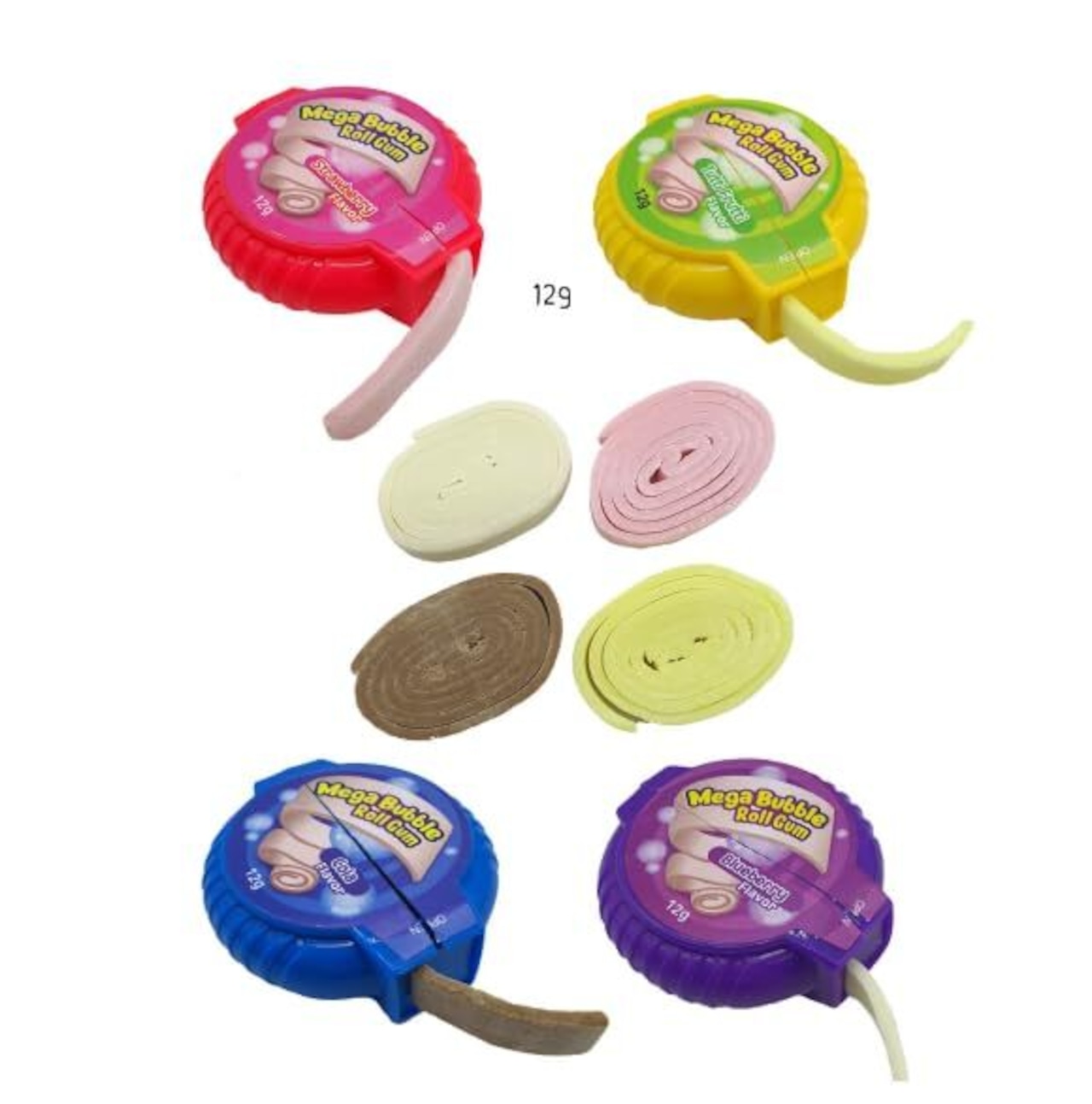 Mega Bubble Roll Gum 12g メガ バブル ロール ガム 4個セット (いちご コーラ ブルーベリー ツーティフルーティーの香り バルーンガム)