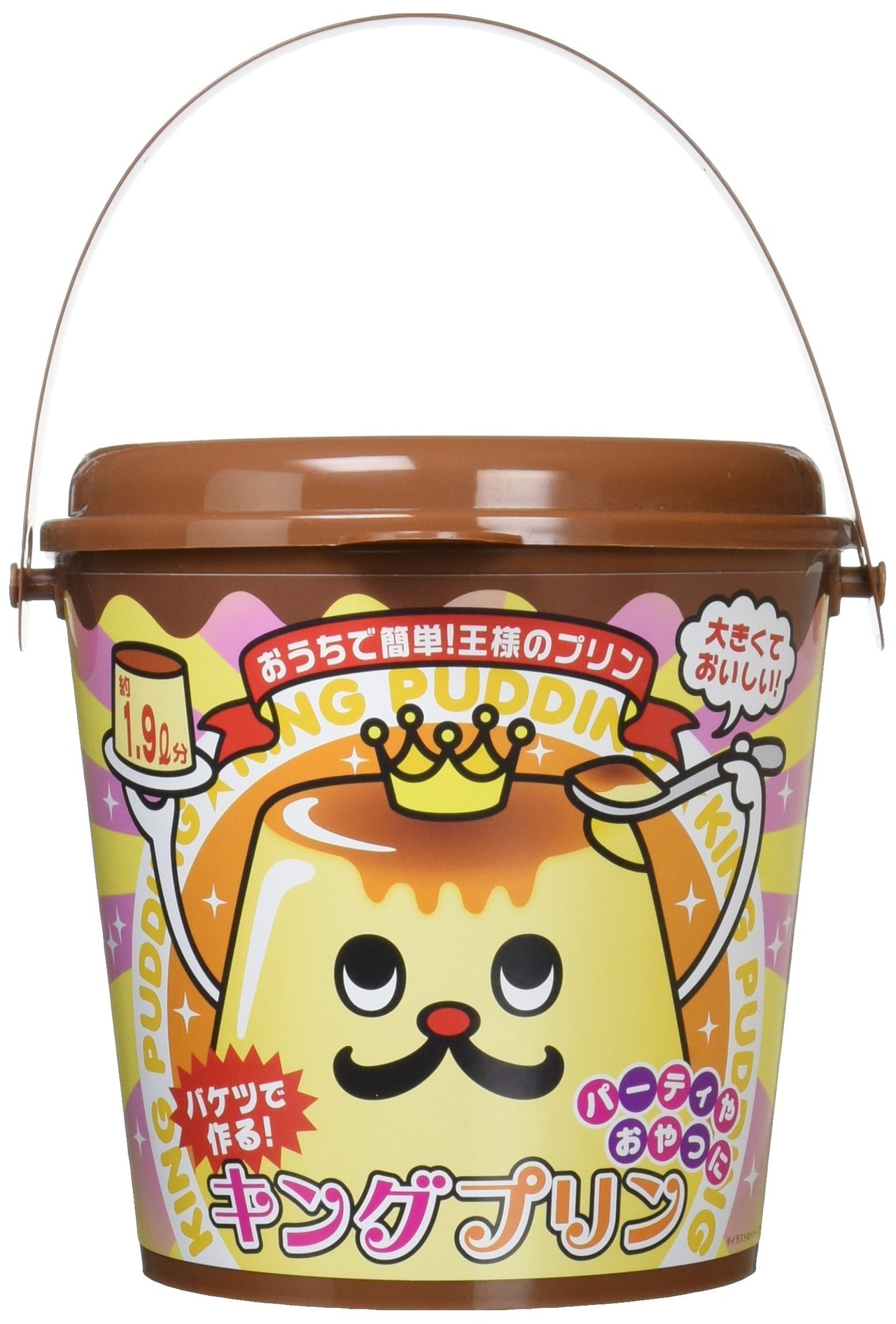 【商品データ】プリンの素190g、カラメルソースの素70g、説明書1枚、必要な牛乳:約1.9~2リットル、直径170mm、高さ180mm