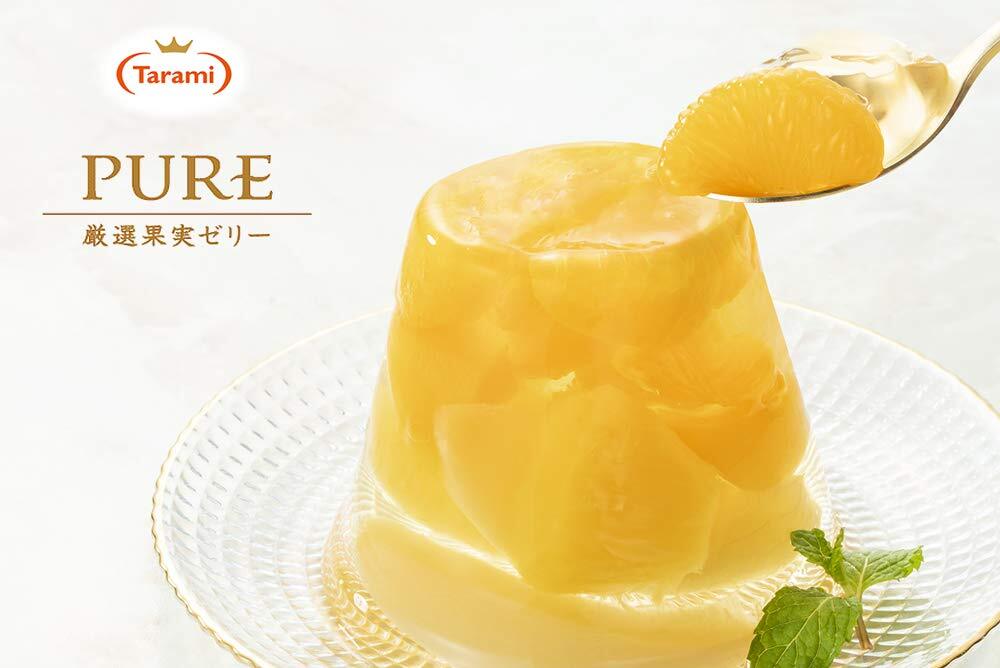 【旬摘み厳選果実のピュアな美味しさを味わえるフルーツゼリー】クリアでみずみずしく、つるんぷるんとした口当たりのゼリーに、上質なフルーツの香り・味わい・食感をギュッと閉じ込めました。いつでも、フルーツの旬の美味しさが楽しめるフルーツゼリーです。旬の時期に収穫した5種のフルーツ果肉を使用し、みかん・黄桃・黄金パイン・白桃・りんごの香り・味わい・食感をシンプルに味わえるゼリーです。クリアでみずみずしく、自然な甘さのゼリーは、つるんぷるんとした口当たりが特徴で、5種のフルーツのフルーティな味わいを引き立てます。