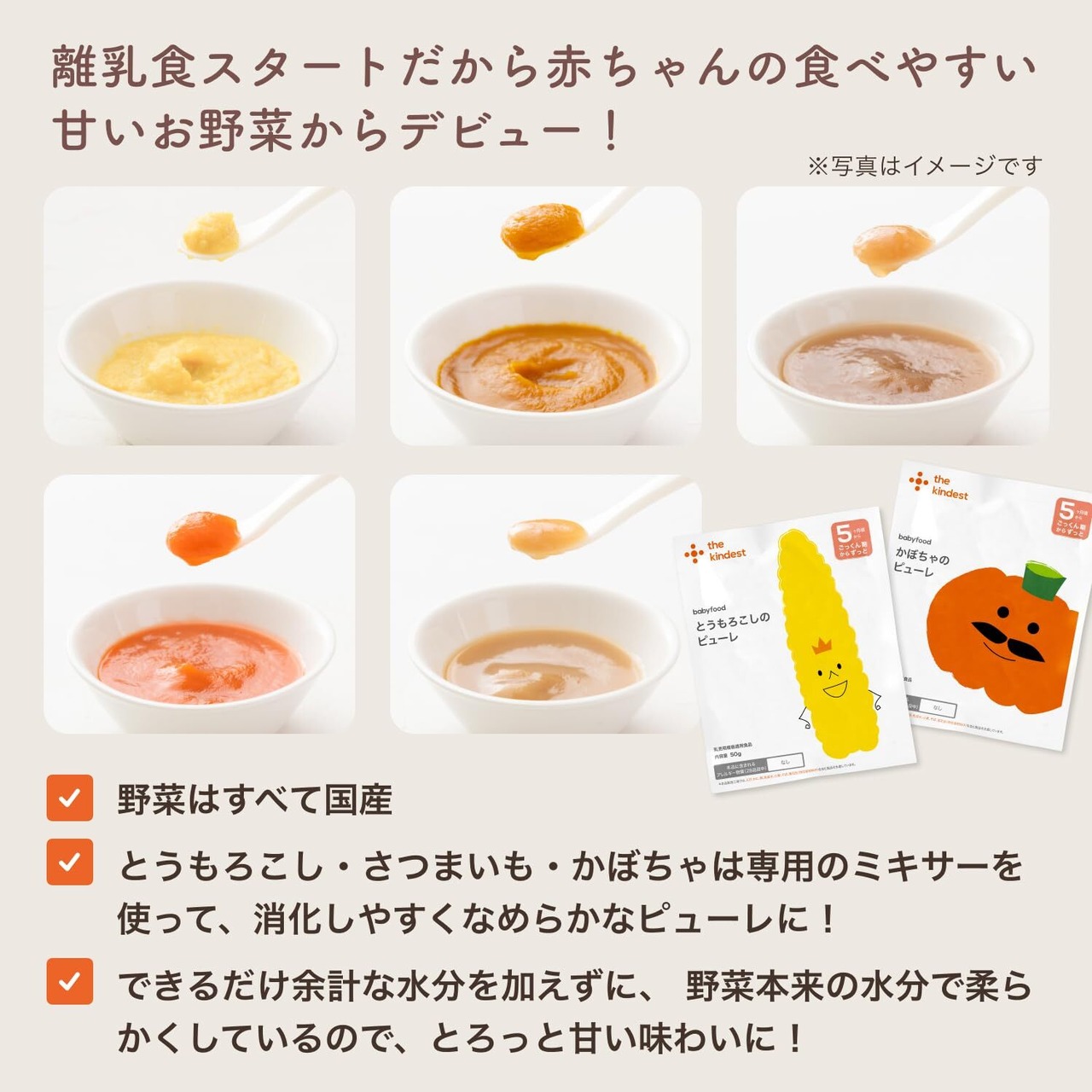 有機野菜のピューレを詰め合わせた野菜ピューレセット。 野菜をしっかり食べて欲しいけど、品目をたくさん揃えたり、加熱料理や裏ごしするのは大変…! そんな方におすすめな、封を開けてすぐに使えるピューレをご用意しました。 ※時期によって有機野菜を仕入れられないことがあります。 その際には国産野菜を使用します。