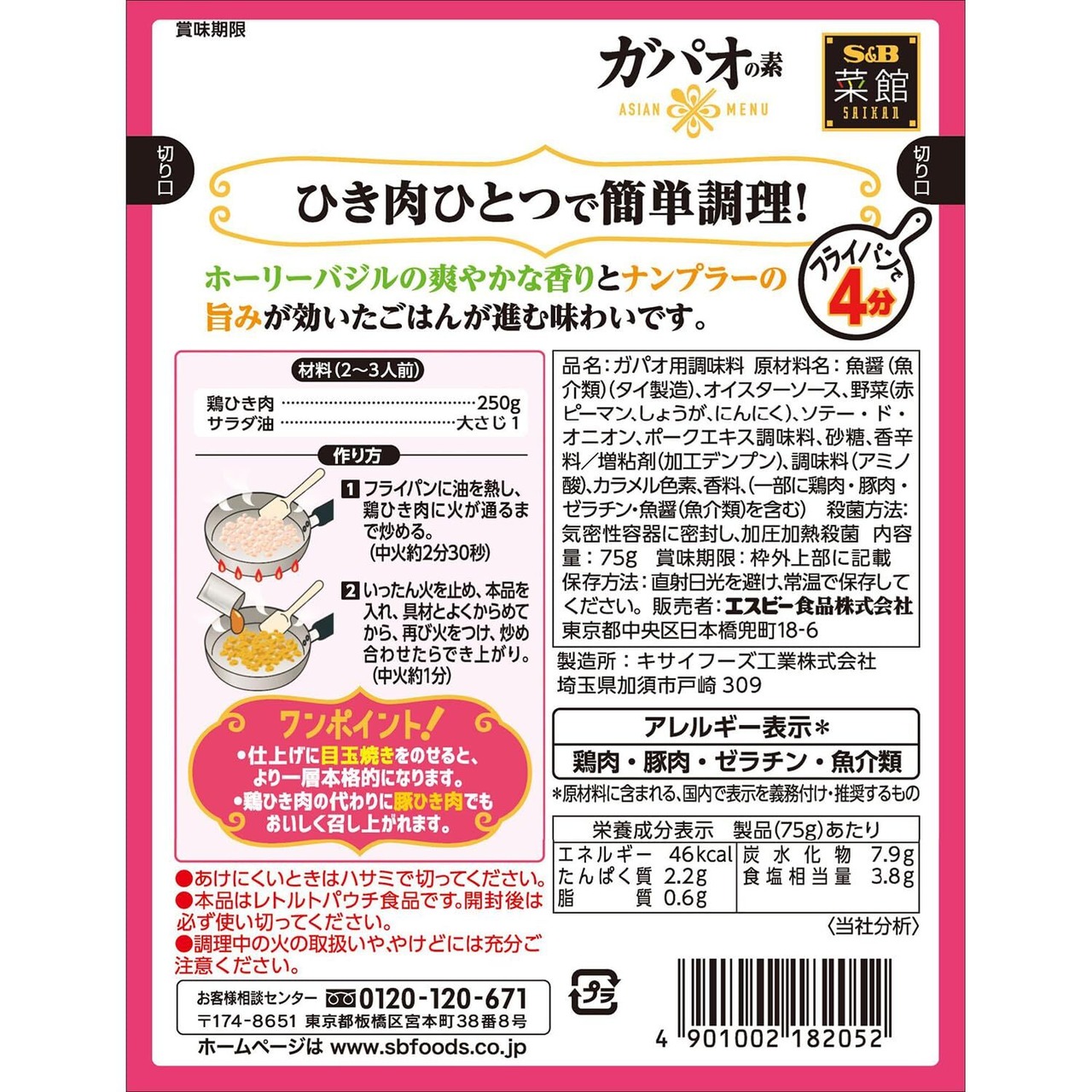 【時短調理】エスビー食品 菜館 ガパオの素 75g ×5個