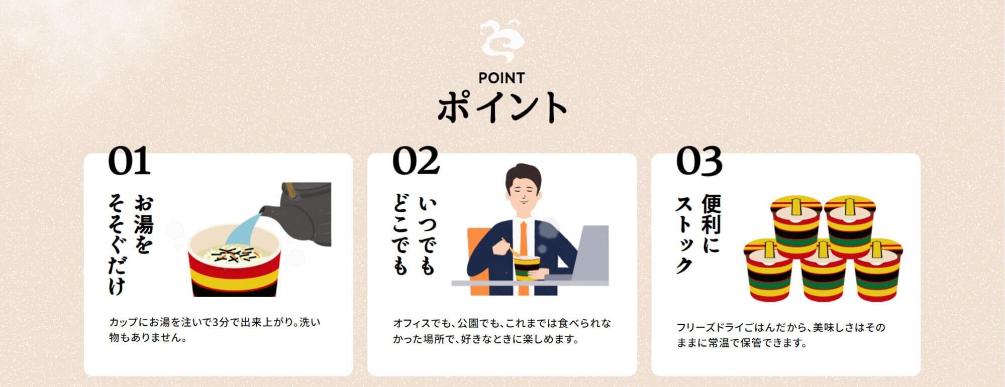 食べたい時にお湯を注ぐだけで食べられる「直充填方式」のカップ茶づけ