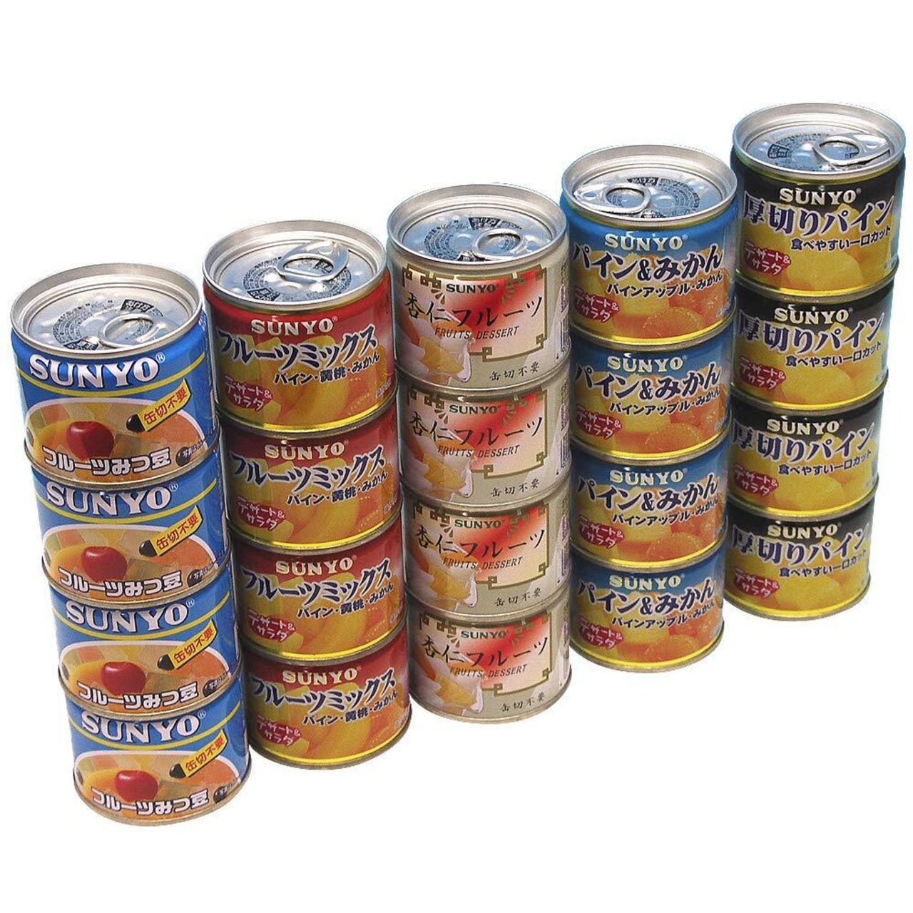 サンヨー 缶詰 フルーツ 20缶セット 【5種×各4缶】 サンヨー堂 SUNYO みかん みつまめ パイン フルーツミックス 防災食 非常食 保存食 果物 みつ豆