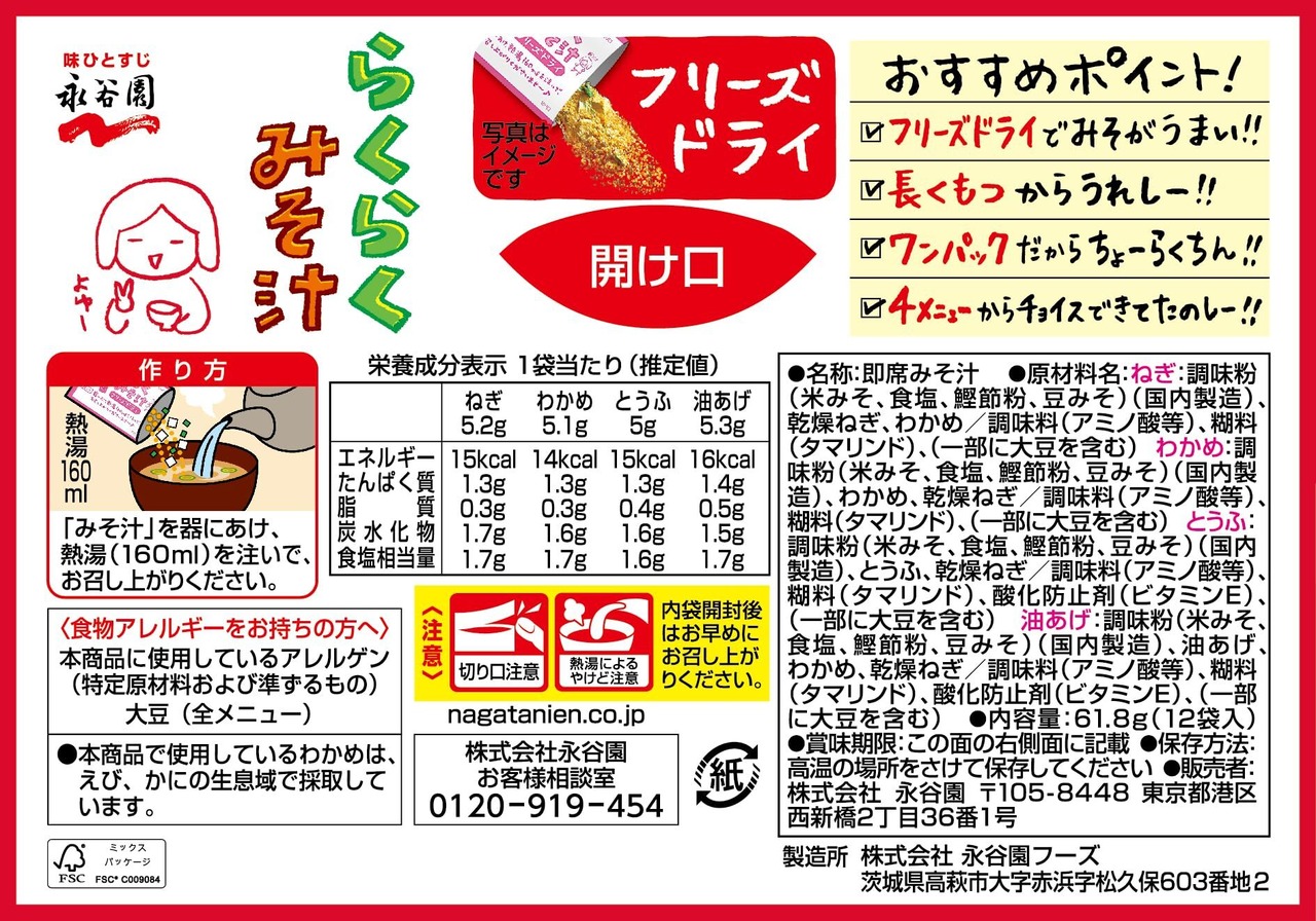 永谷園 フリーズドライ らくらくみそ汁 61.8g ×4個