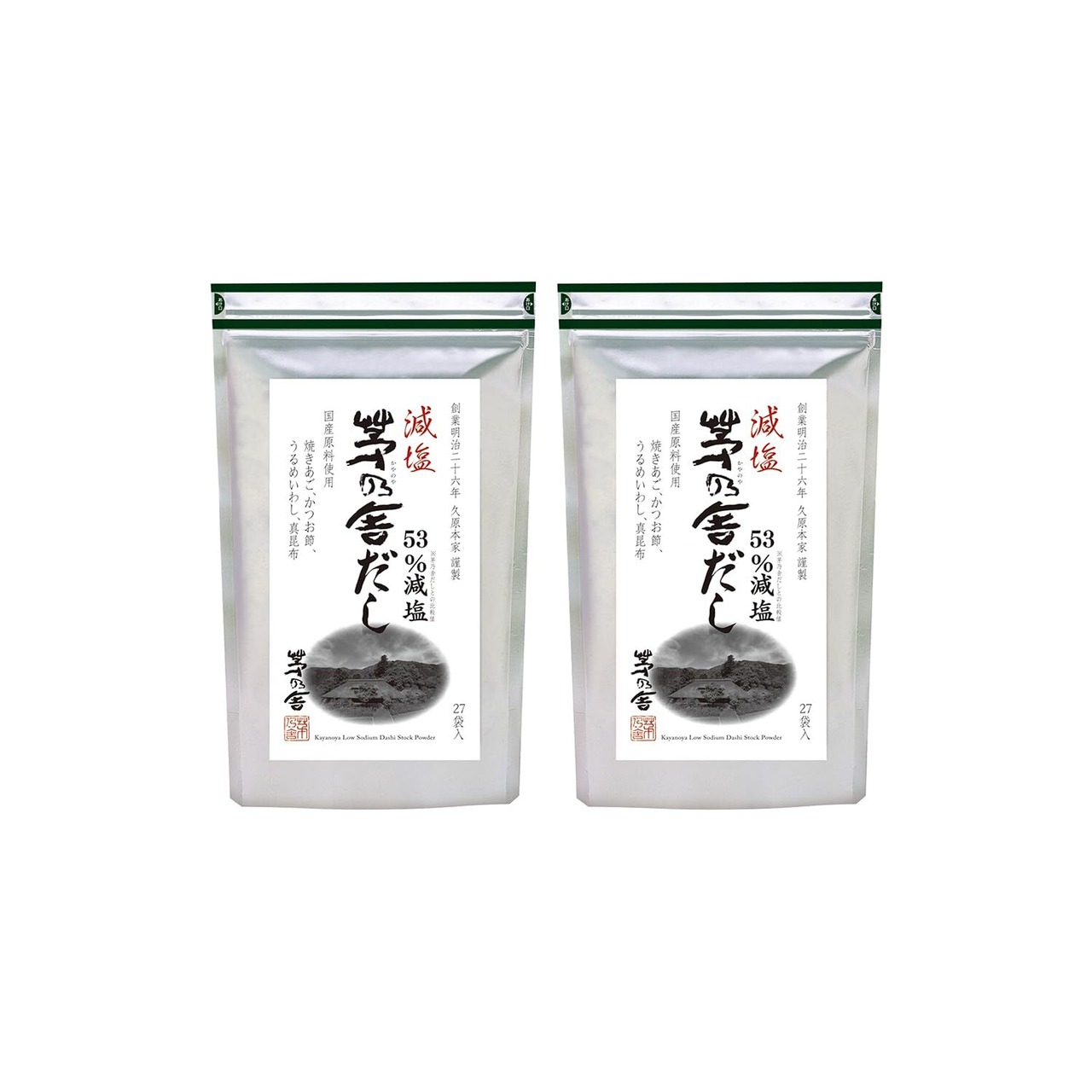 久原本家 減塩 茅乃舎だし 8g×27袋入 【2個パック】 焼あご入り だしパック 出汁 博多 和風だし 国産原料使用