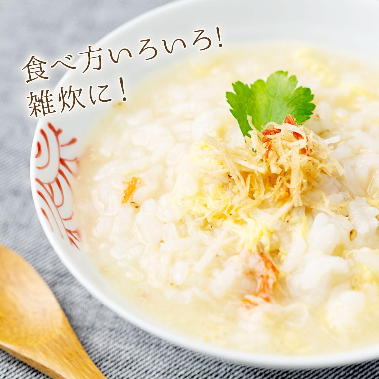 【かにふりかけ】調味かにフレーク(紅ずわいがに(国産)、つゆ、かにみそ、ゆず果汁、カニエキスパウダー、その他)、鱈すり身加工品(鱈、小麦澱粉、その他)、ごま、焼蟹風シーズニング、食塩/ソルビット、調味料(アミノ酸等)、トレハロース、酢酸Na、グリシン、酸味料、香料、酸化防止剤(V.C)、着色料(カラメル)、酵素、(一部に卵・小麦・えび・かに・ごま・さば・大豆・豚肉を含む)