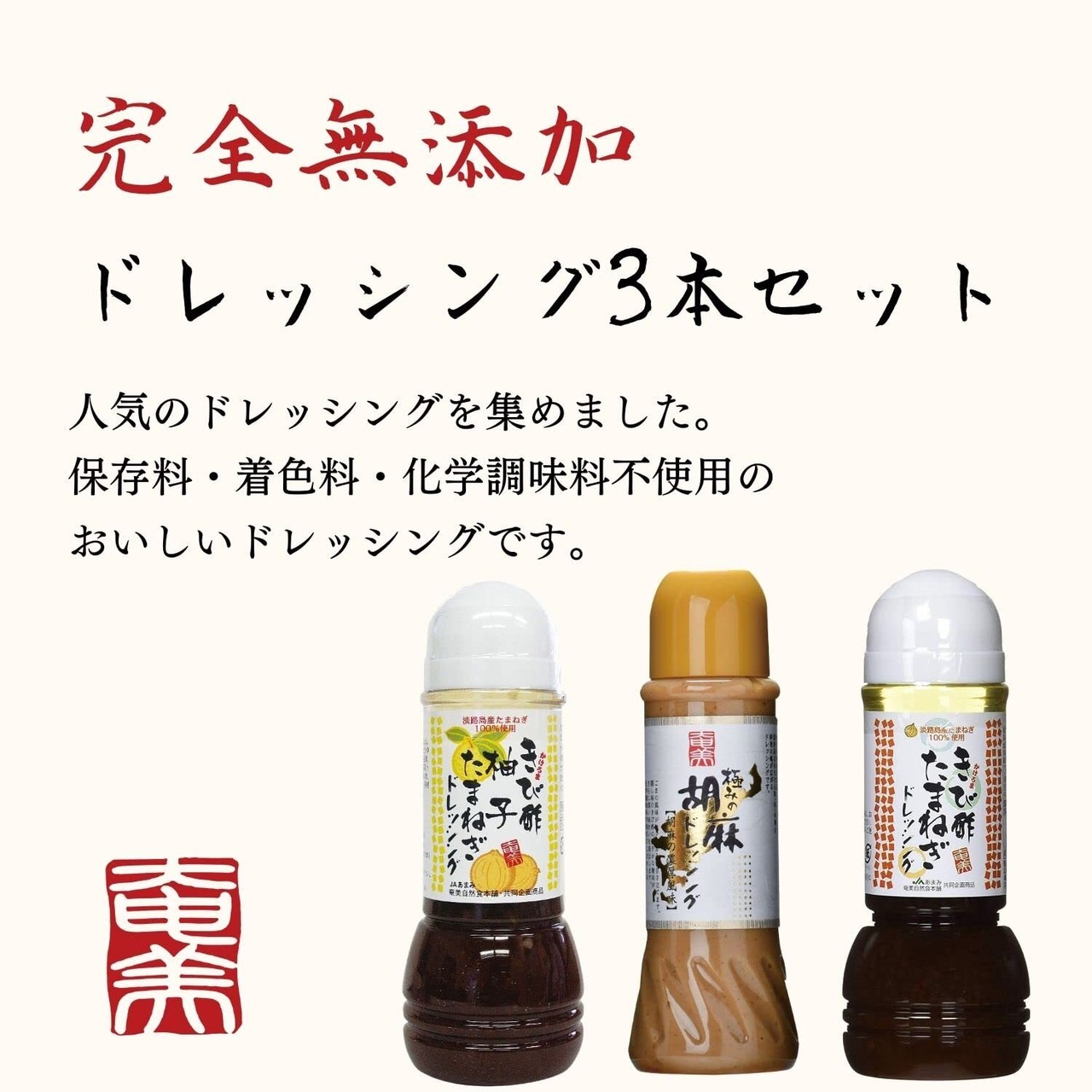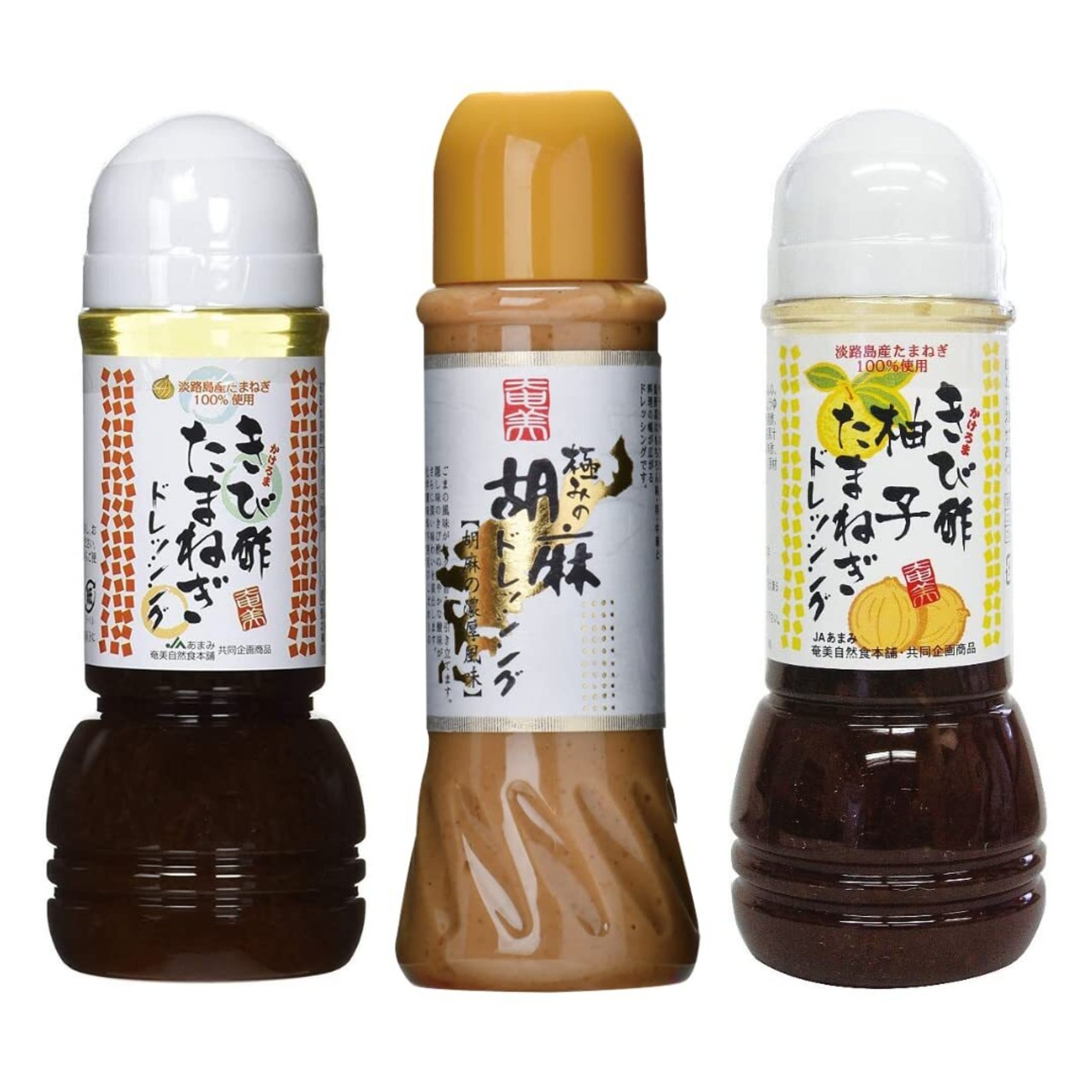 奄美自然食本舗 ドレッシング 3種セット ごま/玉ねぎ/柚子玉ねぎ 無添加 化学調味料不使用 390ml/300ml/300ml