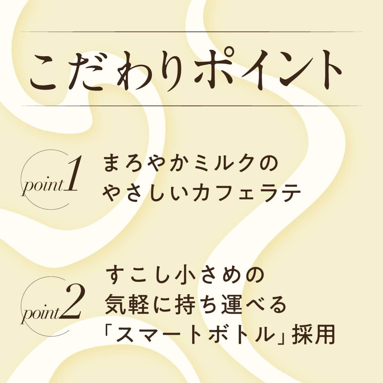 ●「ちょうど良い」が心地よい、スマートボトルで、いつでも気軽に持ち歩けるカフェオレのひと時を。