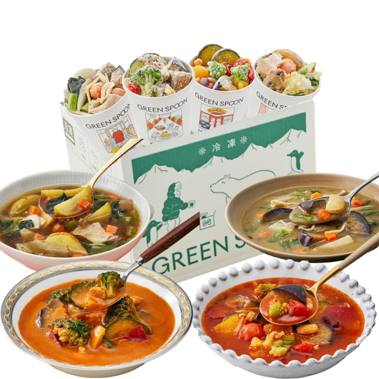 グリーンスプーン 冷凍野菜 野菜スープ 4食 カップ 野菜 【 置き換え ダイエット 低糖質 1食分の野菜 食物繊維 冷凍食品 】GREEN SPOON スープ
