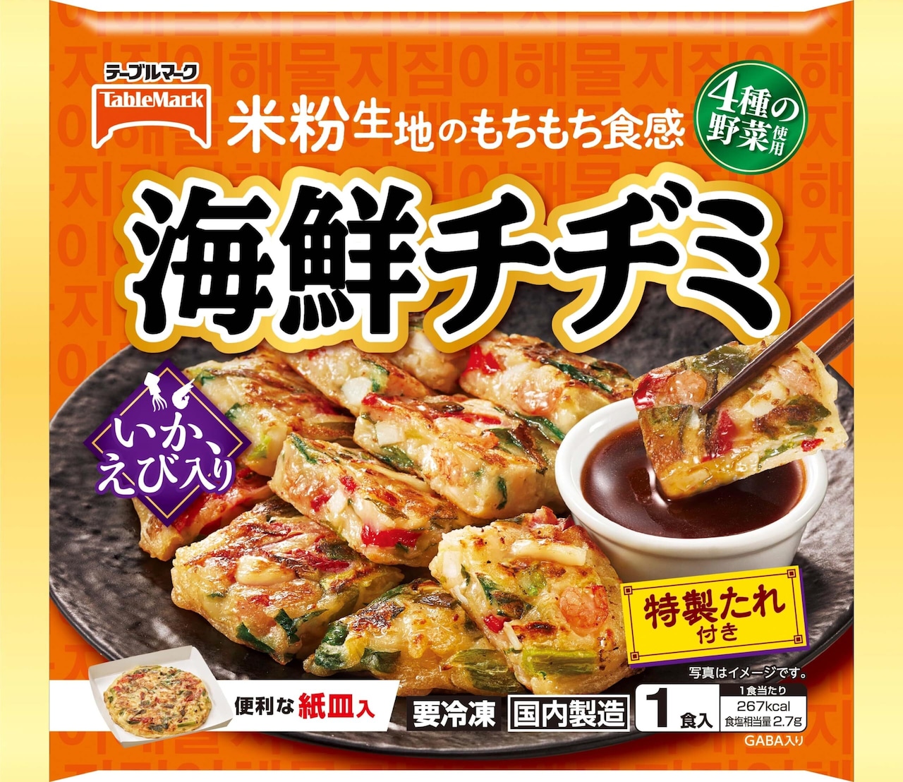 具だくさんでもちもち食感の海鮮チヂミが登場。 チヂミのための特製たれ付き、紙皿入りで準備いらず。 もちもち食感を楽しみたい方はレンジで簡単調理。 「一番大切な人に食べてもらいたい」よりおいしく、楽しく、豊かな価値を創造する【テーブルマーク】の冷凍食品です。 カリっと食感を楽しみたい方はフライパン調理がおすすめです。