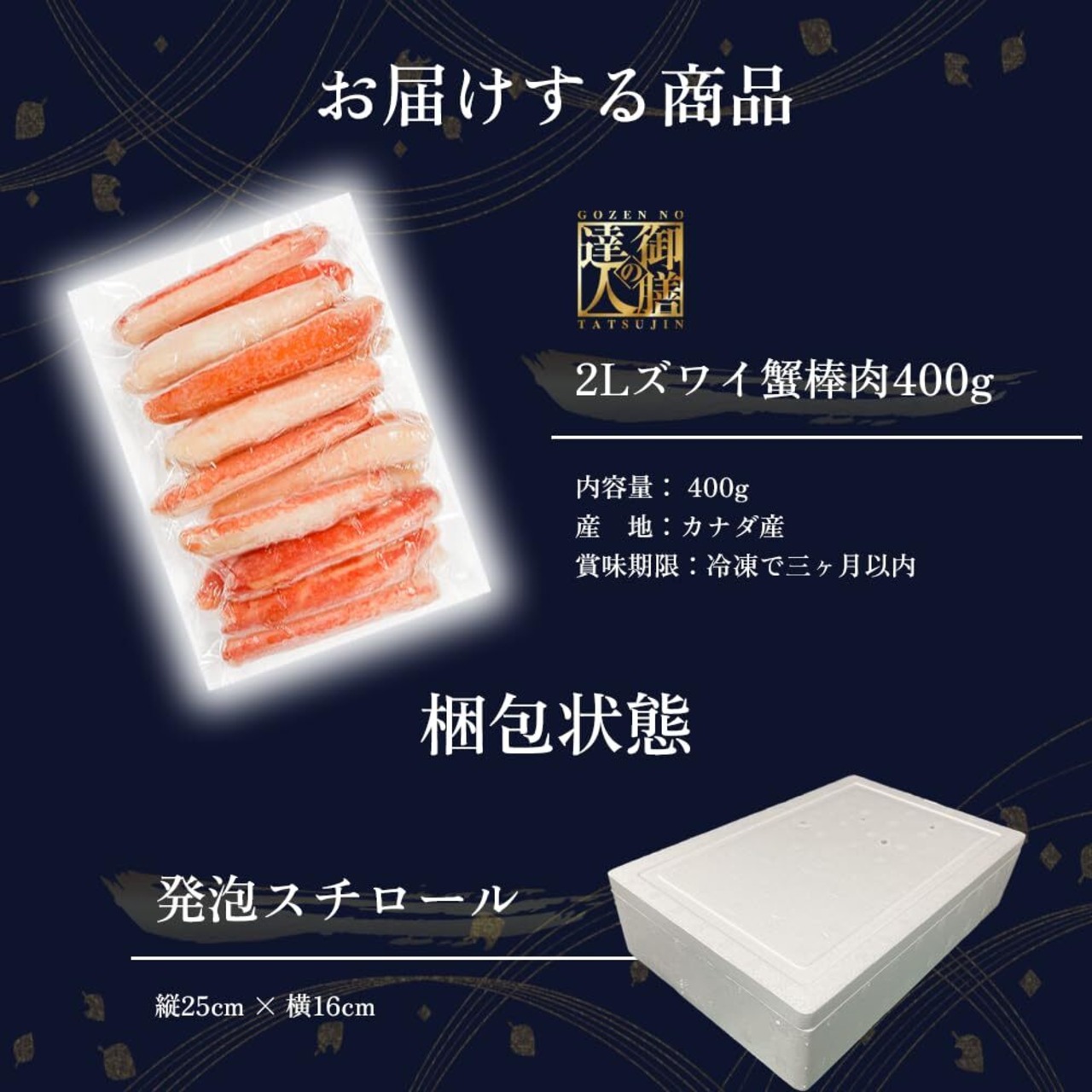 【御膳の達人】2Lボイルズワイガニ棒肉400g 20本前後 太足 大サイズ ずわいがに 蟹 蟹しゃぶ 蟹鍋 生食用 海鮮丼 ポーション 刺身 グルメ ギフト プレゼント 内祝い お取り寄せ 海鮮BBQ BBQ