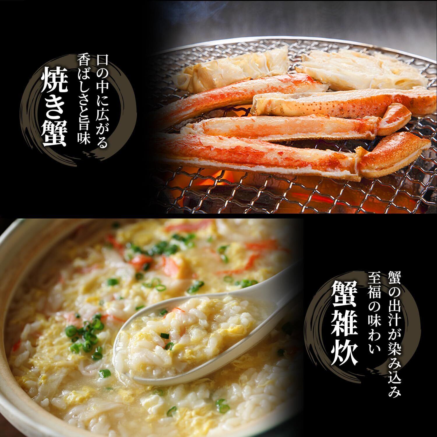 何もつけずにお召し上がりいただけるのはもちろん、焼き蟹や鍋、身をほぐしてチャーハンや中華スープの具などいろいろな調理法でずわいがにをお楽しみいただけます。