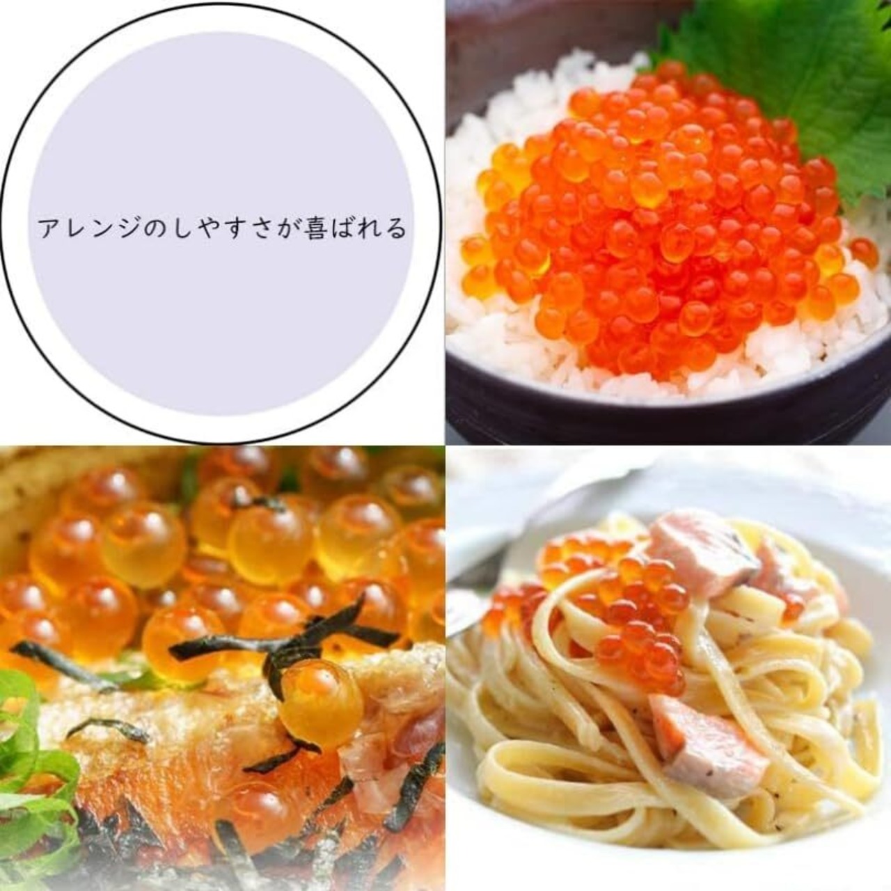 【ひと手間かけてるのでよりおいしい】コクと風味を引き立てる特性醤油を、マスいくらに丁寧に漬け込みました。アルコール凍結処理により、ドリップも少なく品質の高い商品です。より一層美味しくお召し上がりいただくために、解凍は冷蔵庫で半日~1日程かけゆっくりと解凍してからお召し上がりください。