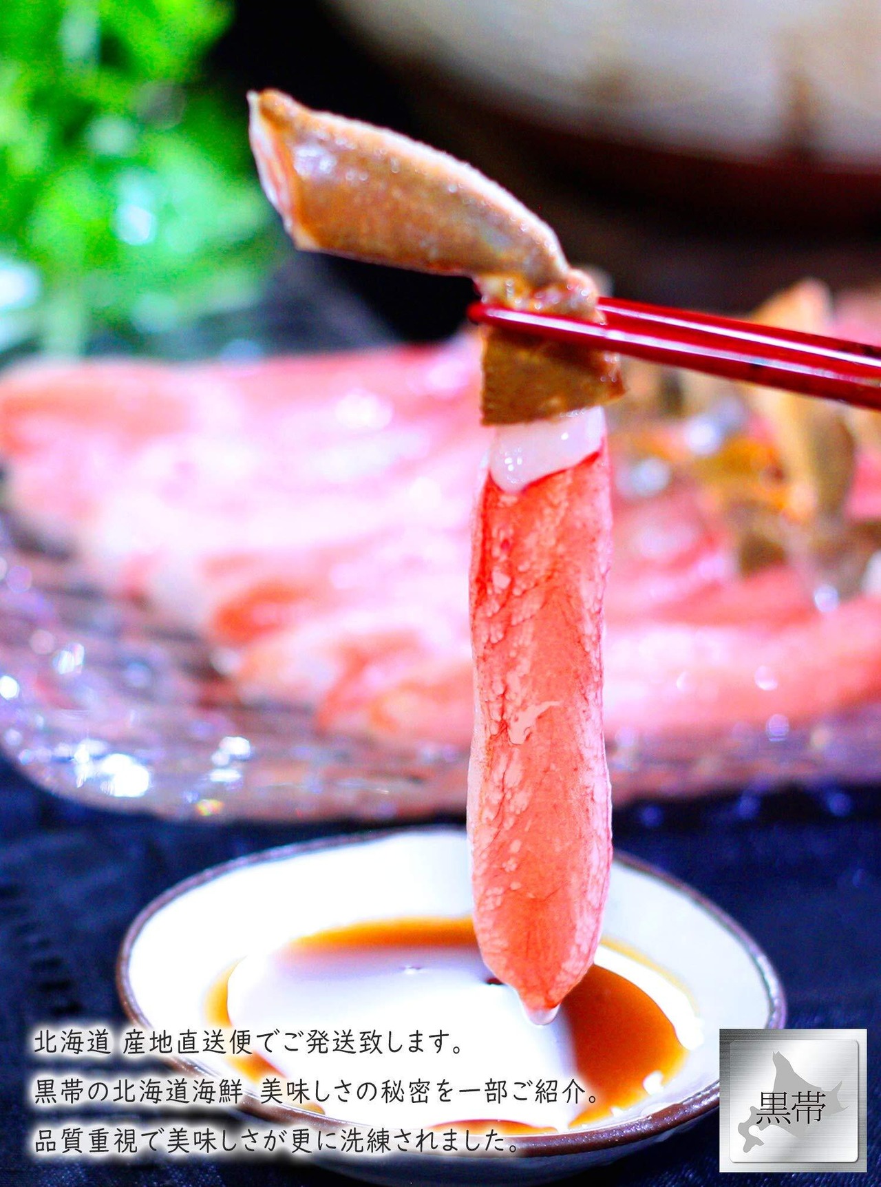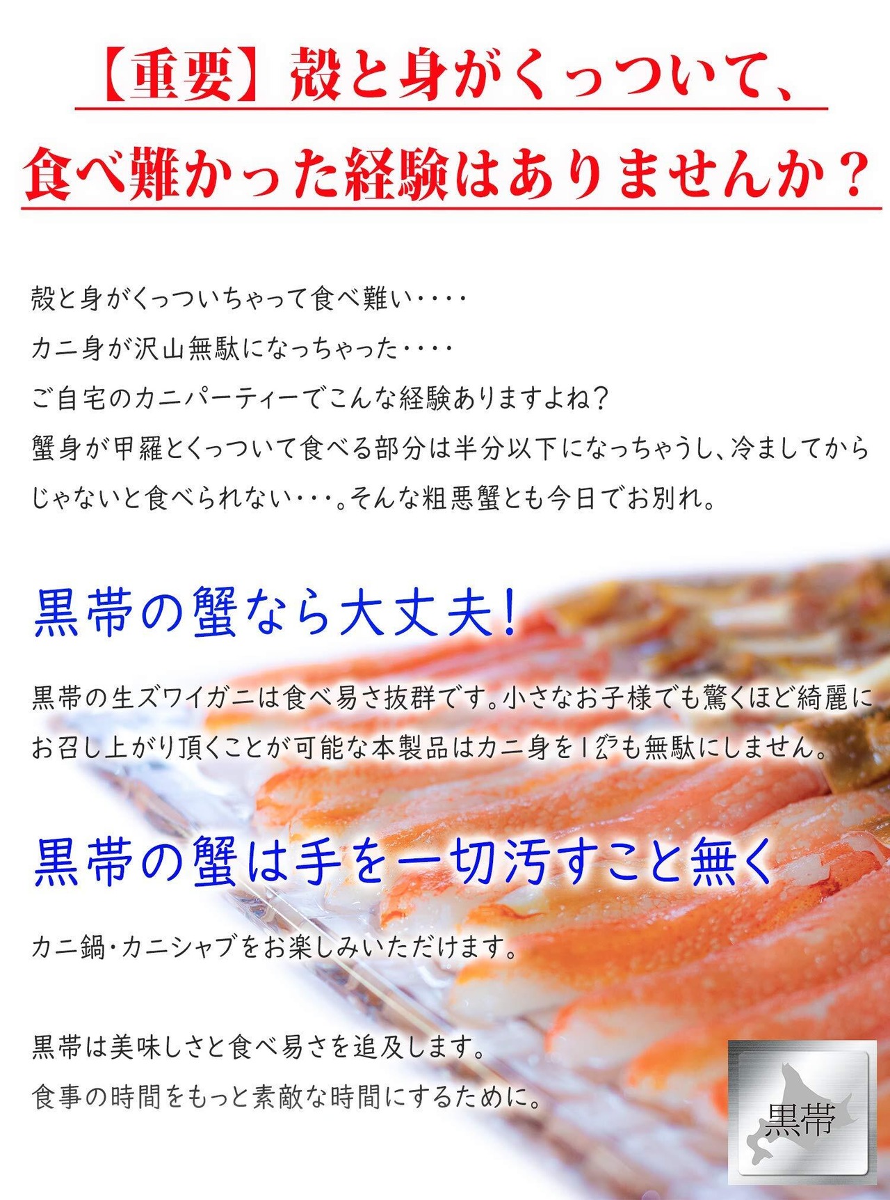 黒帯 ギフトセット 生ズワイガニ 脚 特大 生 ずわい蟹 足 棒肉 ポーション かに むき身 良品選別済 (500g ご自宅用)