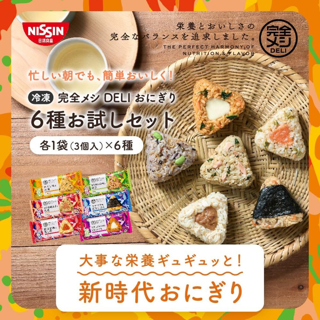 冷凍 完全メシ DELI 日清食品 おにぎり 冷凍おにぎり 6種お試しセット ほぐし鮭と大葉 紀州産梅と蒸し鶏 ツナマヨ味 五目ごはん ピリ辛明太子と高菜 ちりめん山椒と枝豆 コチュジャン香るビビンバ風 各1袋(3個入)× 6種