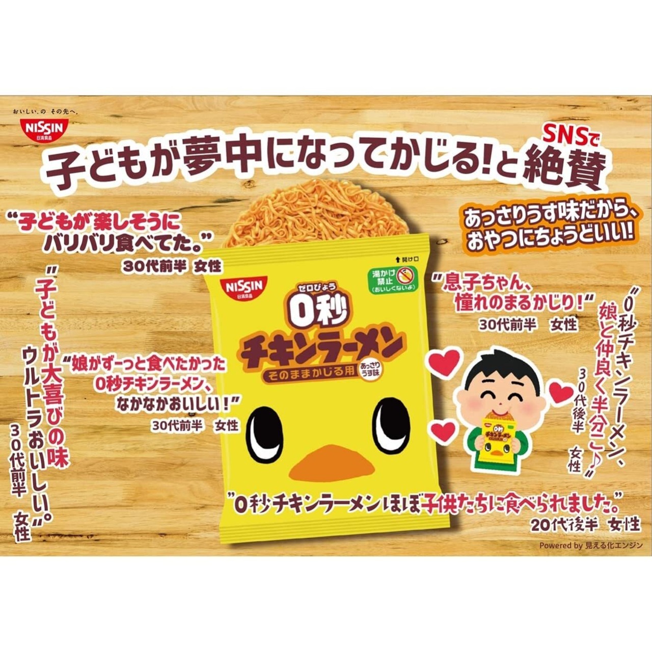 ビールやチューハイなどお酒のおつまみに、おやつの時間に、スナック菓子として。調理不要でそのままかじってor砕いて食べられる、「0秒ですぐおいしい、すごくおいしいチキンラーメン」です。