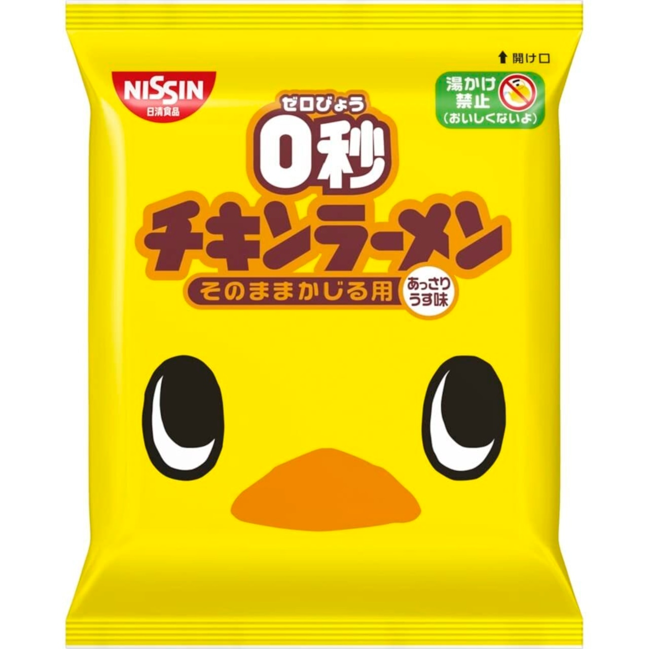 そのままかじる用0秒チキンラーメン 塩分は通常品の半分以下であっさりうす味ながら、食べ始めたら止まらないやみつきになるチキンラーメン味です。