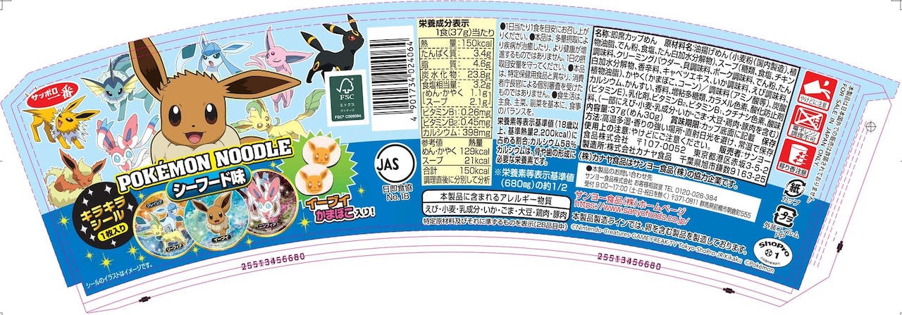 サンヨー サッポロ一番 ポケモンヌードル シーフード味 37g×12個