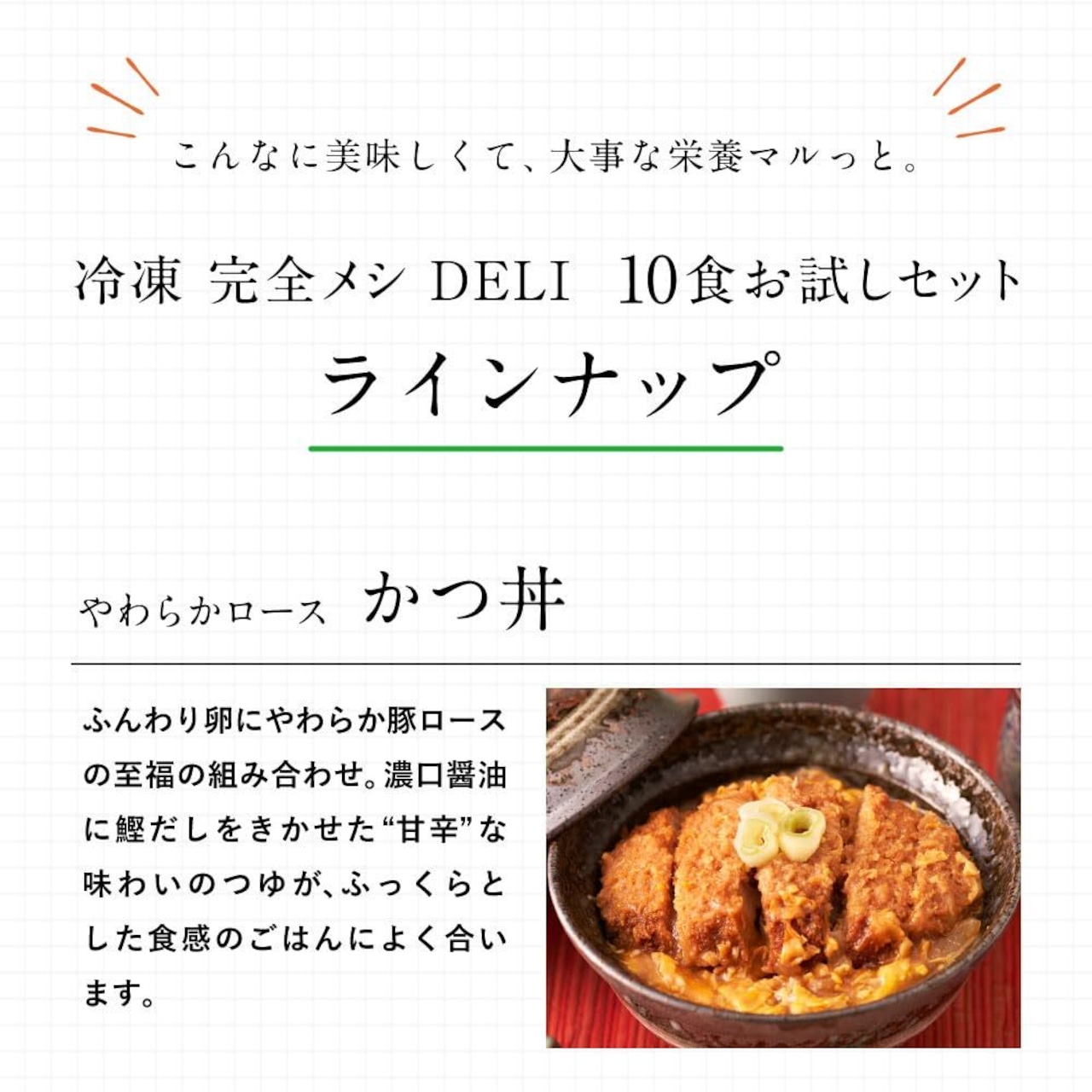 完全メシDELI 日清食品 冷凍 10食お試しセット かつ丼 牛丼 欧風カレーライス ボロネーゼ 汁なし担々麺 各2食 たんぱく質 食物繊維 冷凍弁当 冷凍食品 冷凍パスタ 冷凍麺